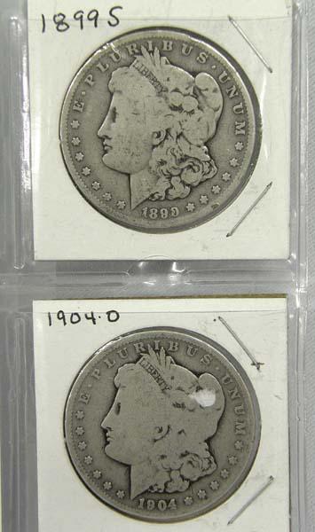 2 Silver Dollars, 1899-S Morgan and 1904-O Morgan. Buyers Pay Actual Shipping and Handling Charges(see terms and conditions for more information).