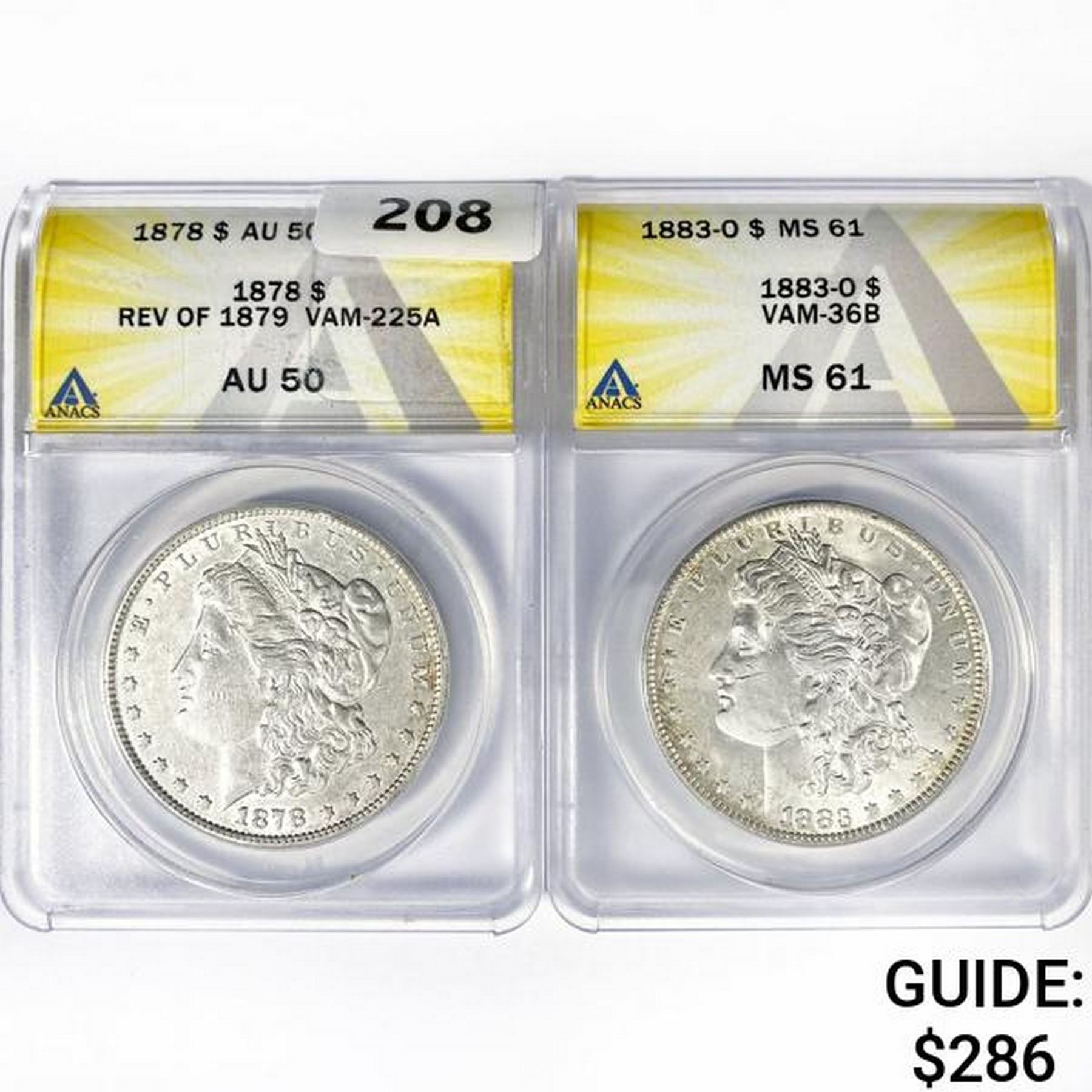 (2) Silver Dollars Incd Rev 79 ANACS 1878-1883