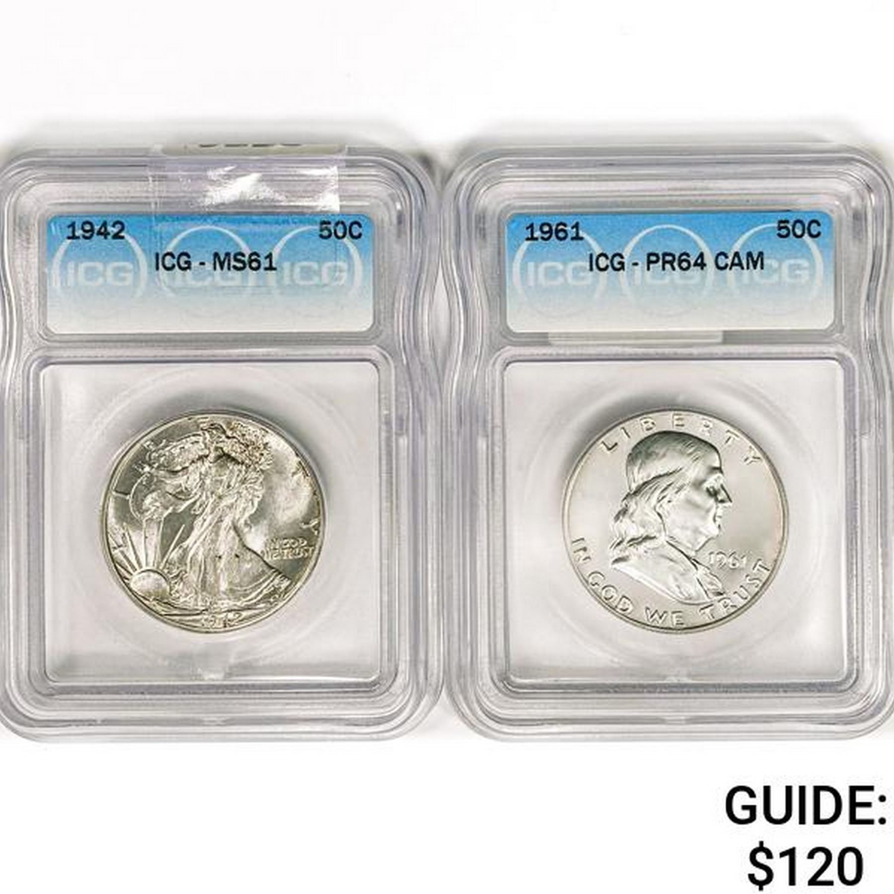 [2] Silver Half Dollars ICG PR,MS 1942-1961