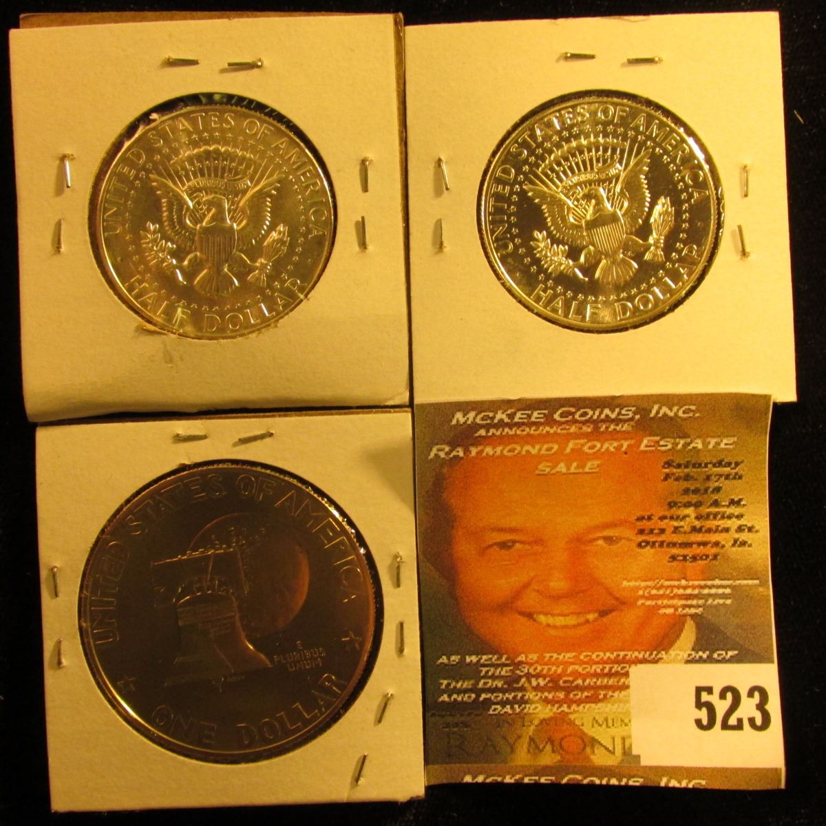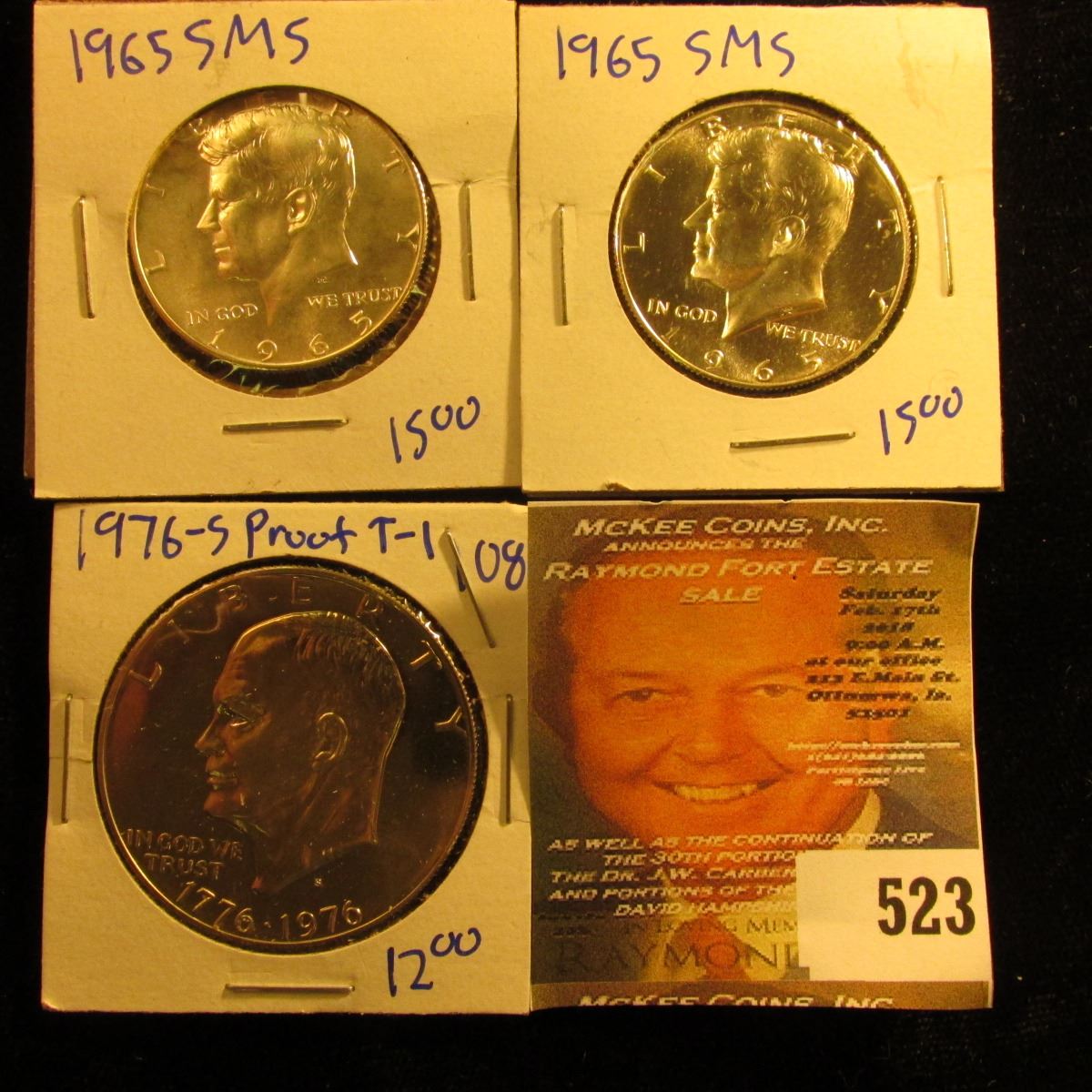 2 Silver Kennedy Halves From 1965 Special Mint Sets Plus Proof 1976-D Type 1 Ike Dollar