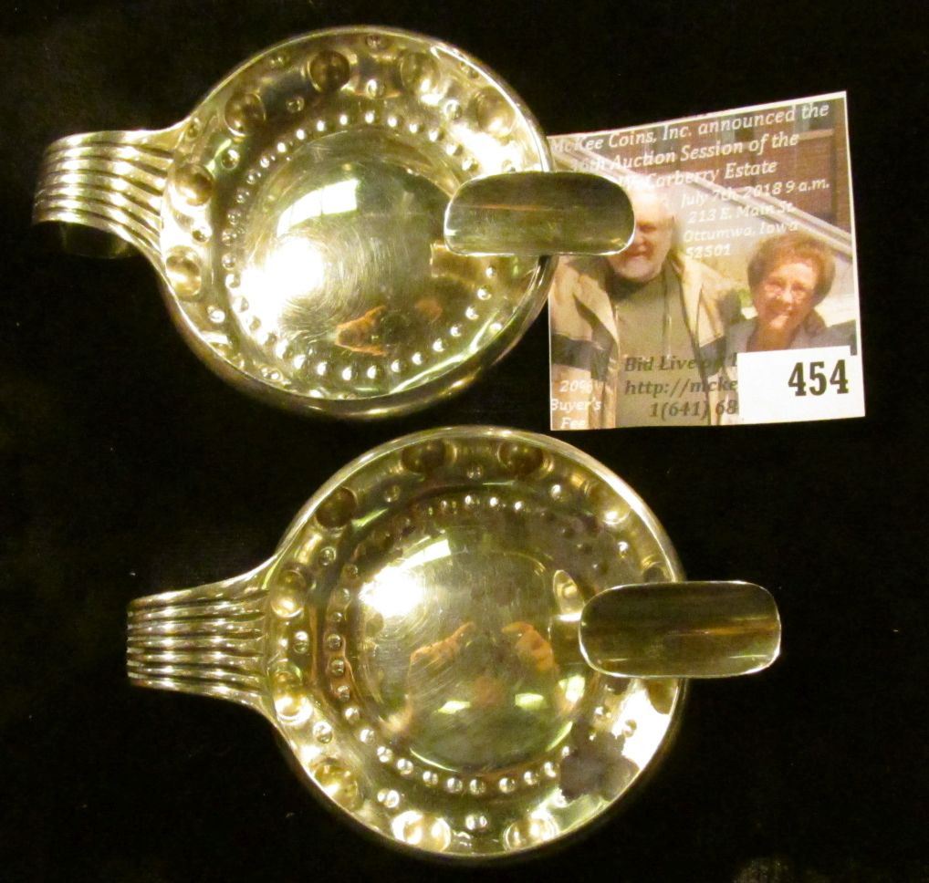 (2) (Silver? Platinum?) Cartier ashtrays, marked CARTIER RL 950 M MADE IN FRANCE. Scarce, heavy, 113.2 g / 72.85 dwt / 3.64 troy ounces. Scarce to find, much less as a pair and this nice!