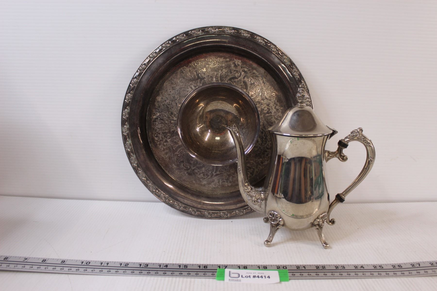 (2) Silverware Not Marked: Chip & Dip Serving Platter & Tea Pot