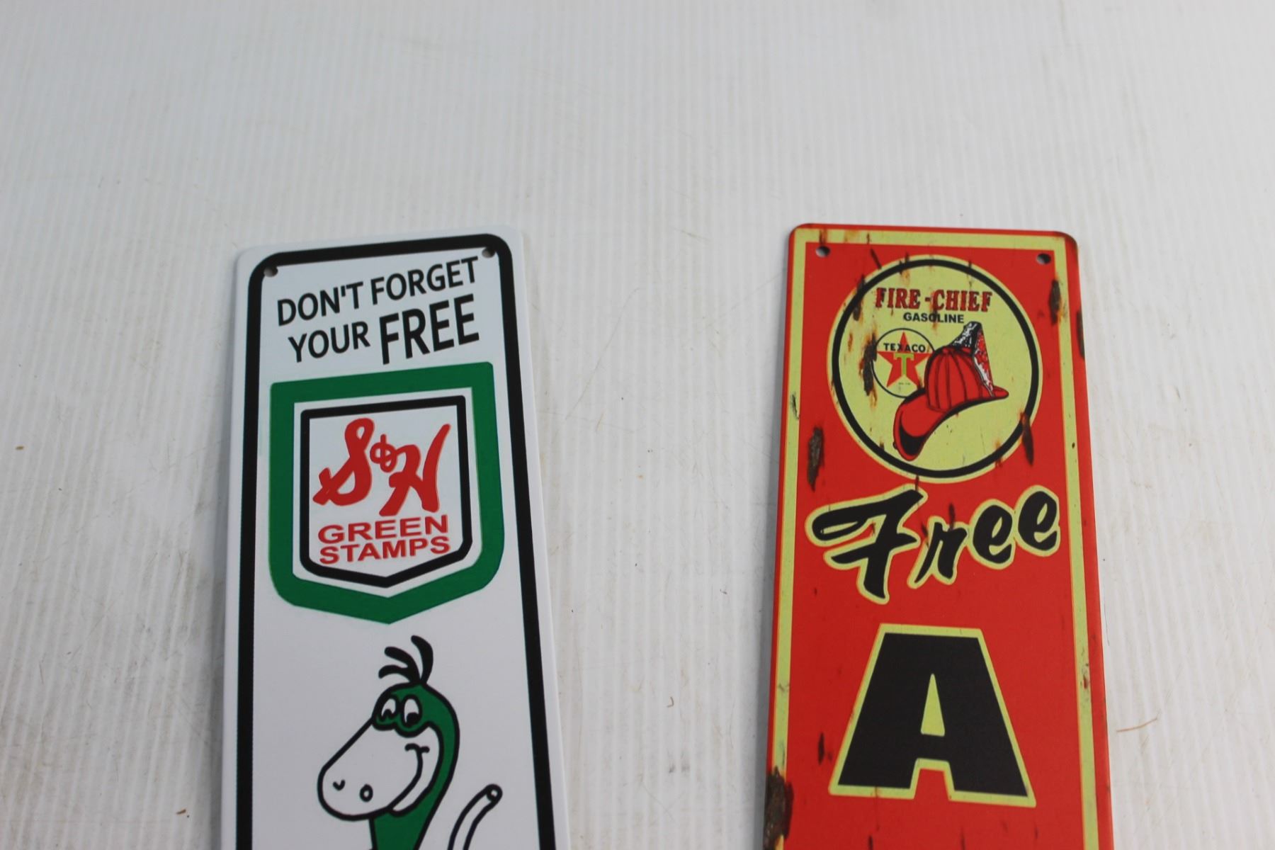 (2) Sinclair and Firechief Signs 16'' x 4''