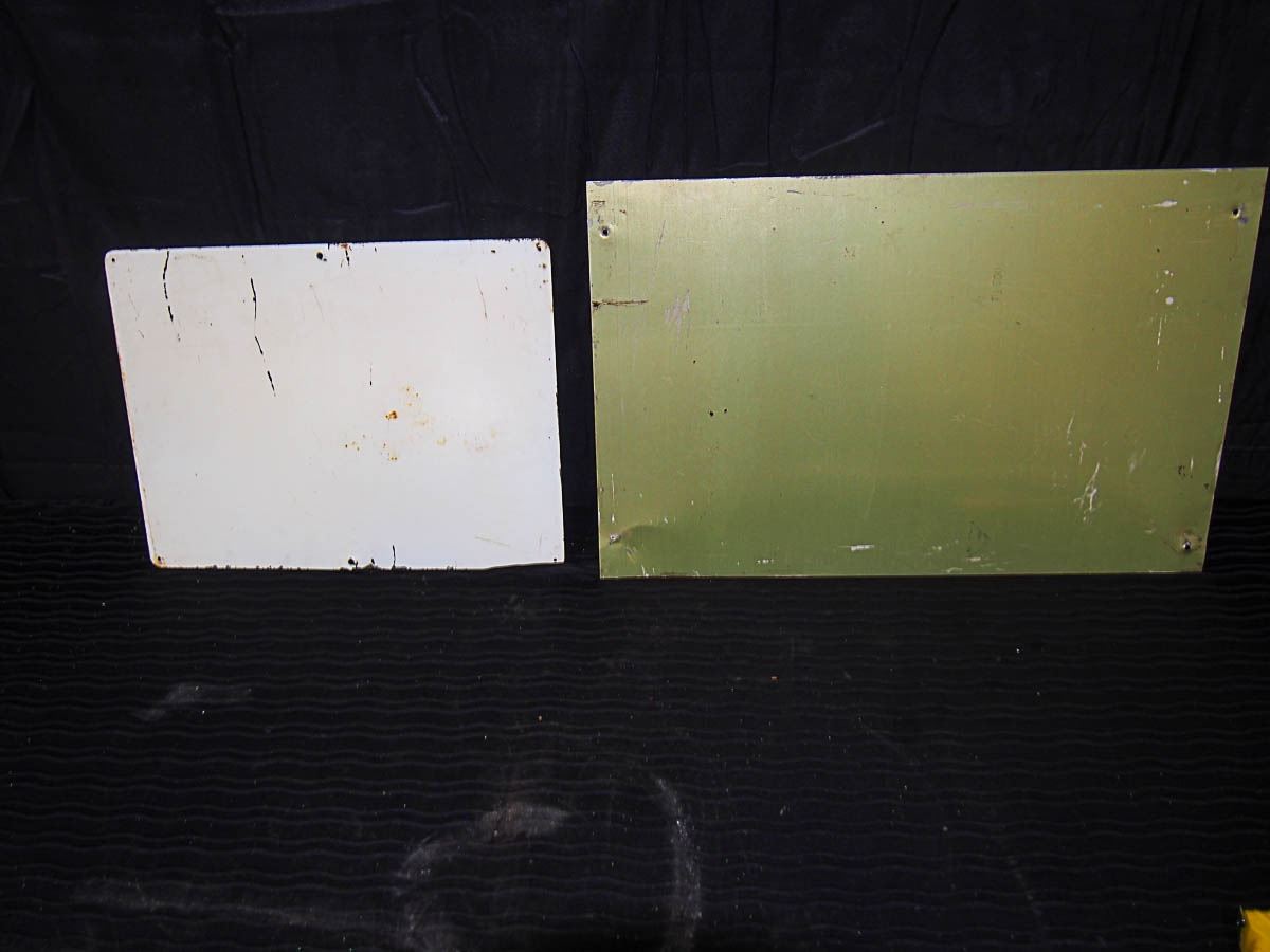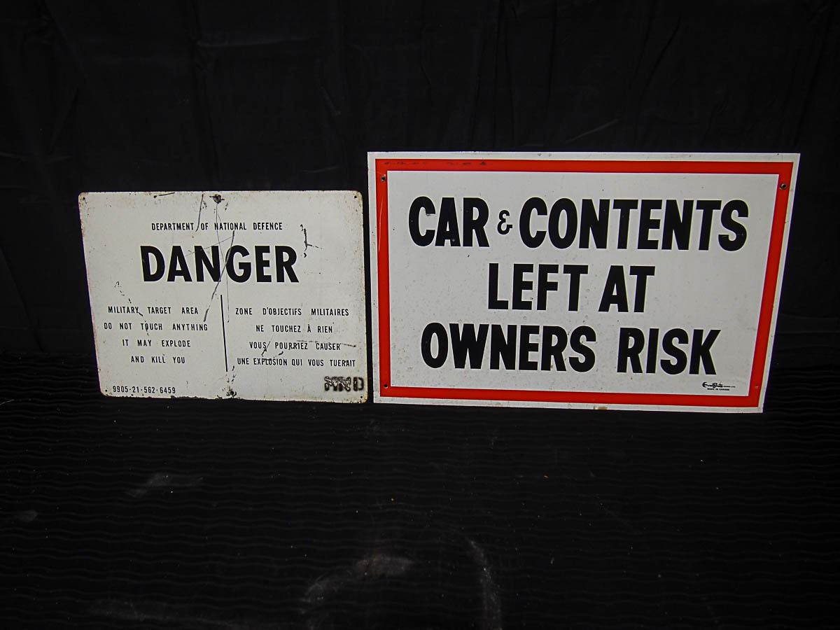Danger Sign is Metal and 16”x12”, Risk Sign is tin and 22” x 15”