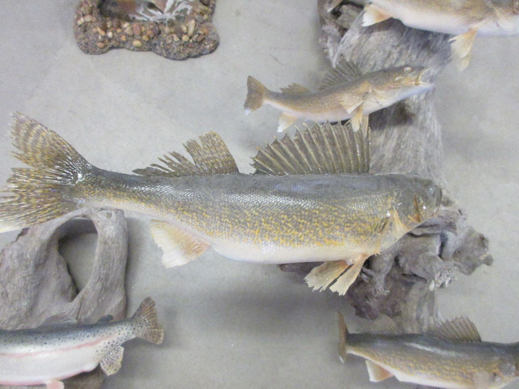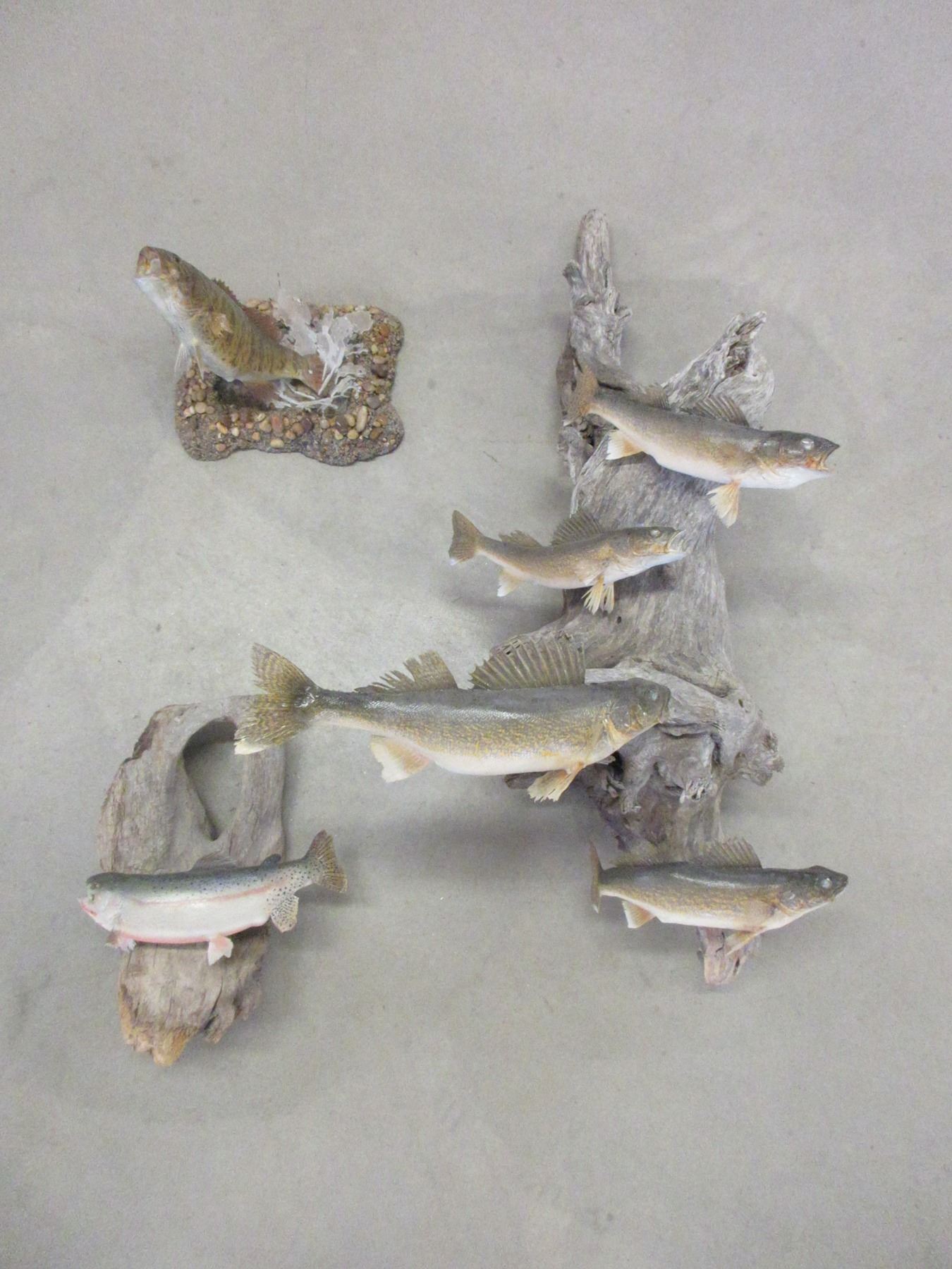 2 Single Trout Mounts- Hanging Walleye Tree With 4 Walleyes