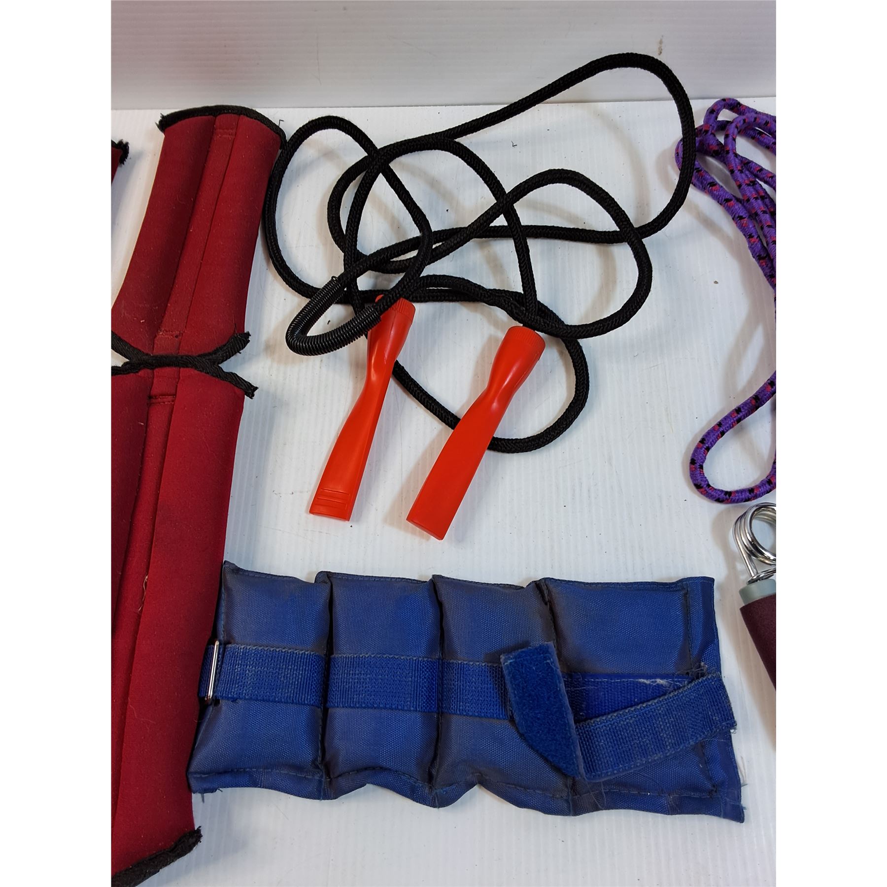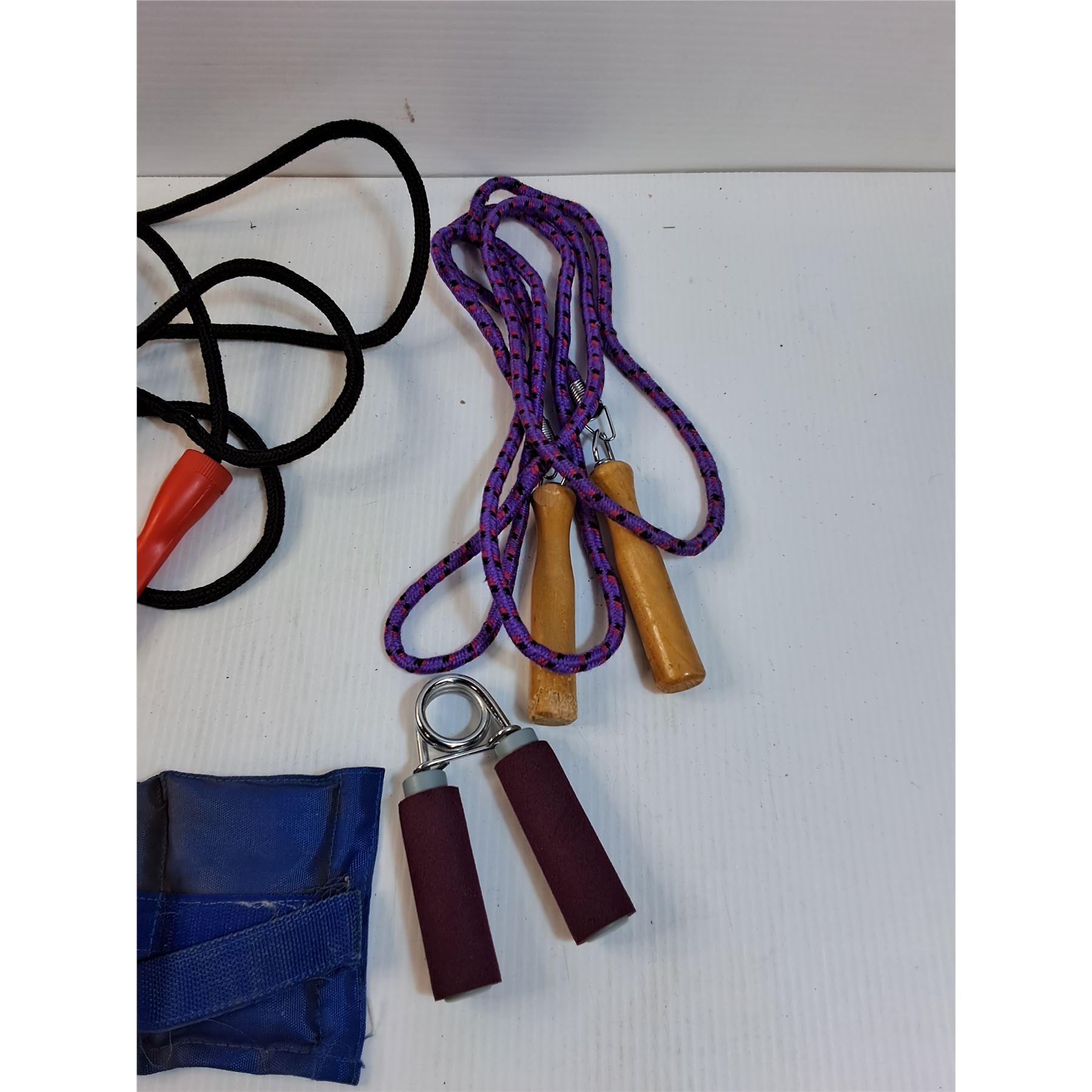(2) Skip Ropes, Weighted Exercise Ankle & Wrist Weights, Hand Strengthener