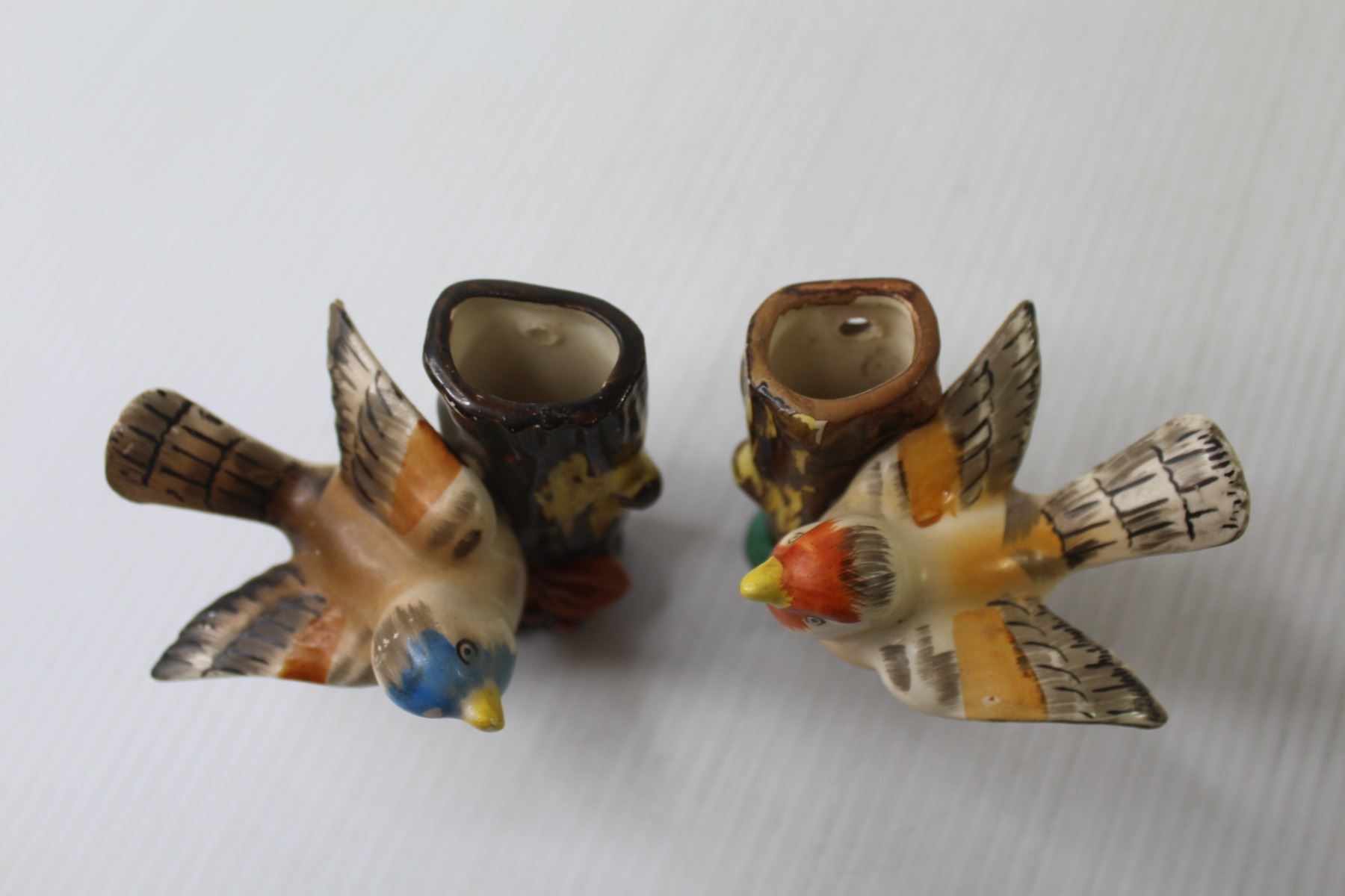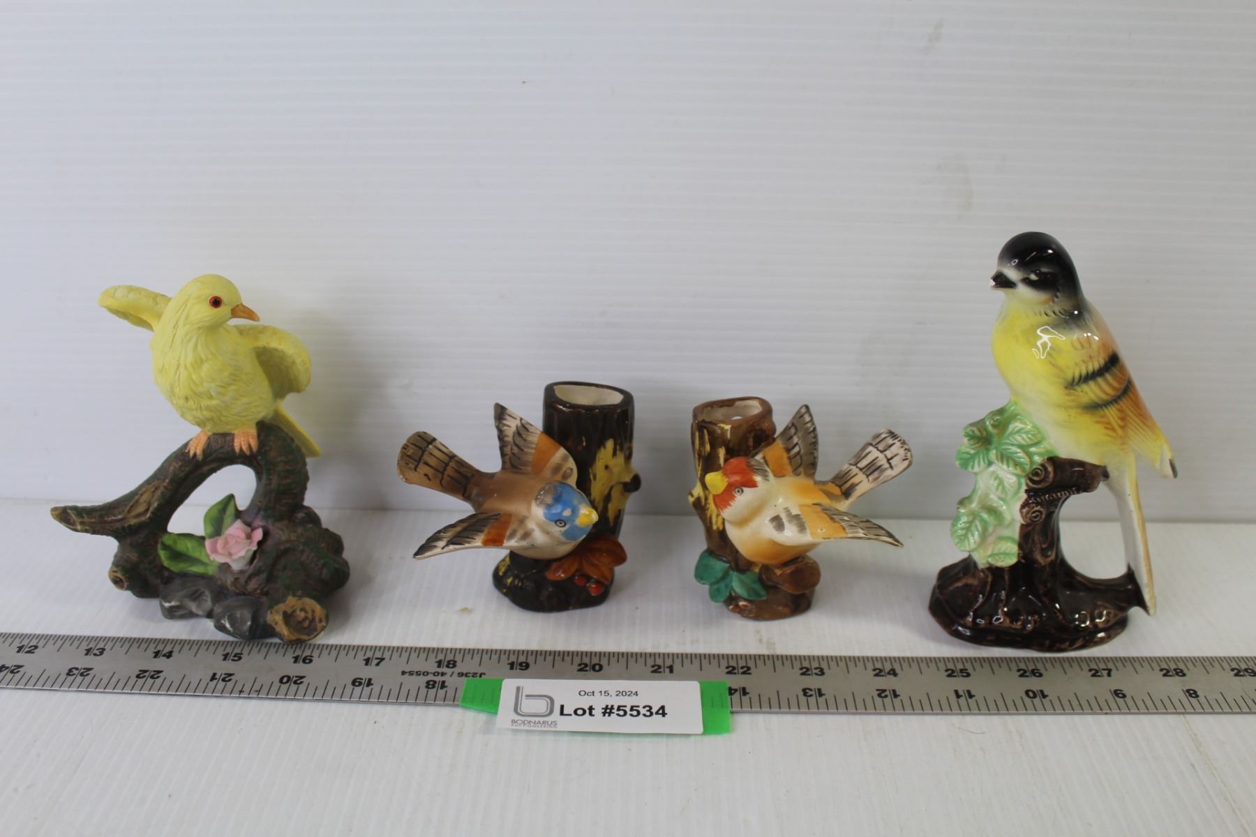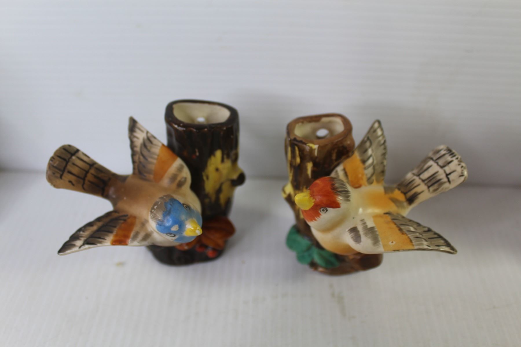 (2) Sm Ceramic Bird Vases - (2) Ceramic Bird Ornaments