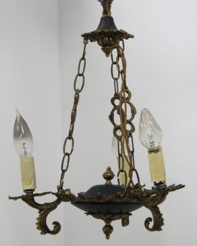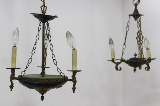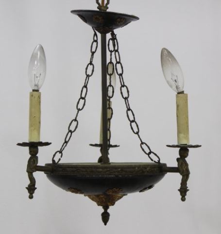 One brass and metal 3-light empire style figural chandelier, approx. 13 1/2" H x 12" W; and one 3-light brass & metal chandelier, approx. 9" W. (6034)