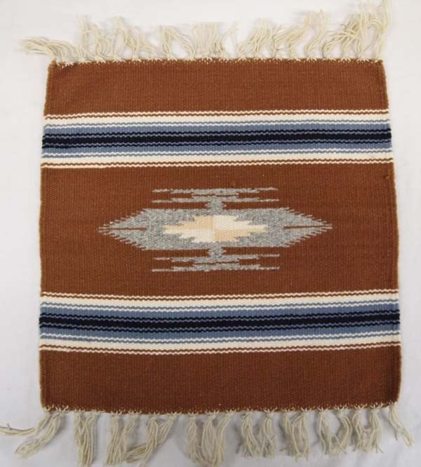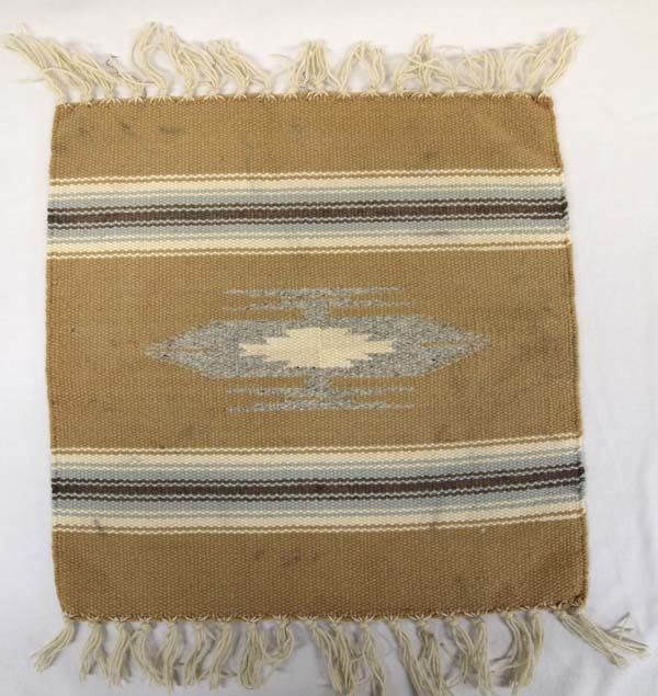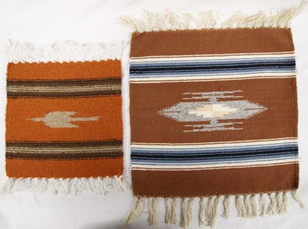 2 Small Chimayo Textiles, fringed, largest measures 15''W x 17''L, minor staining on light side