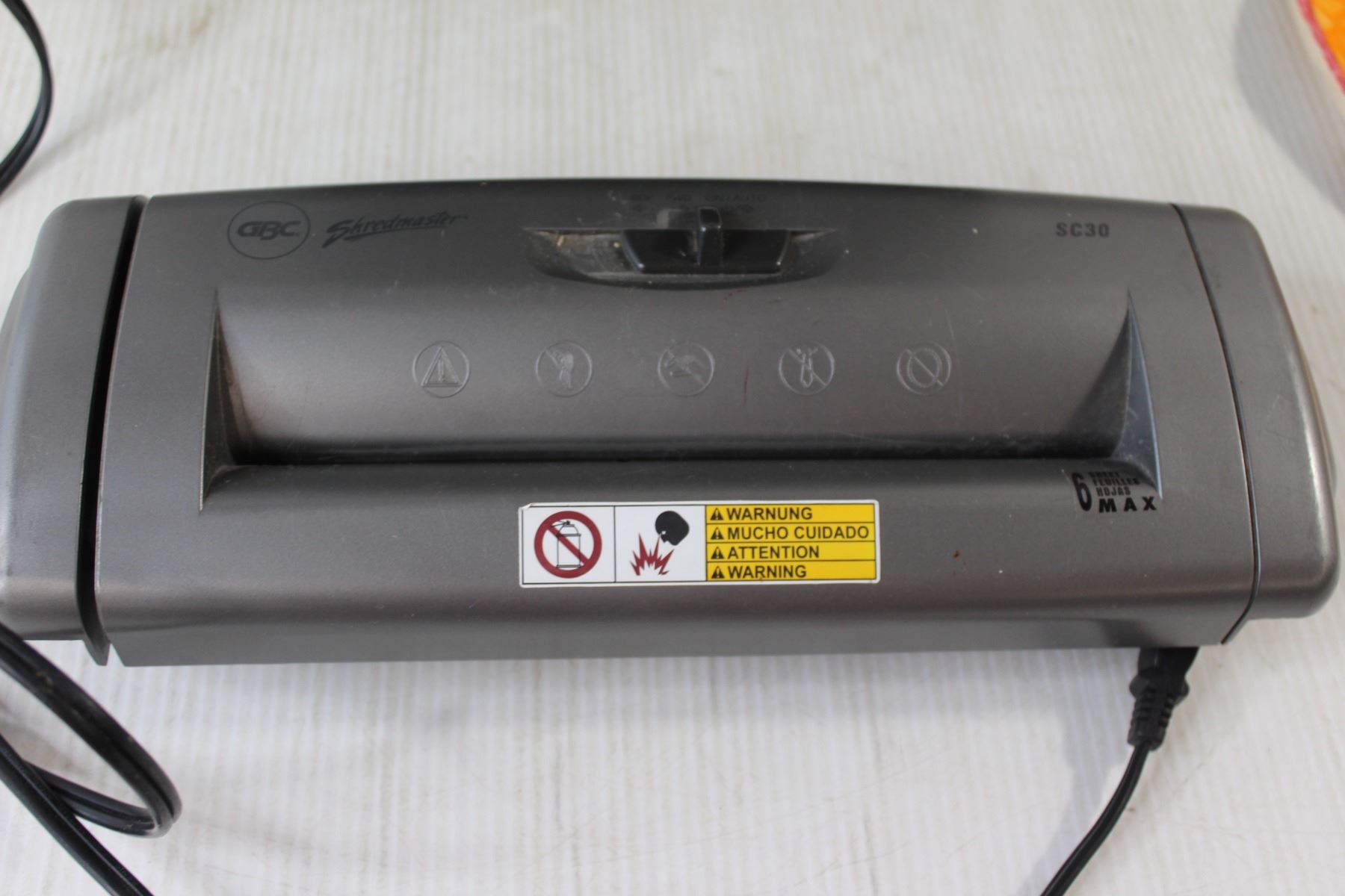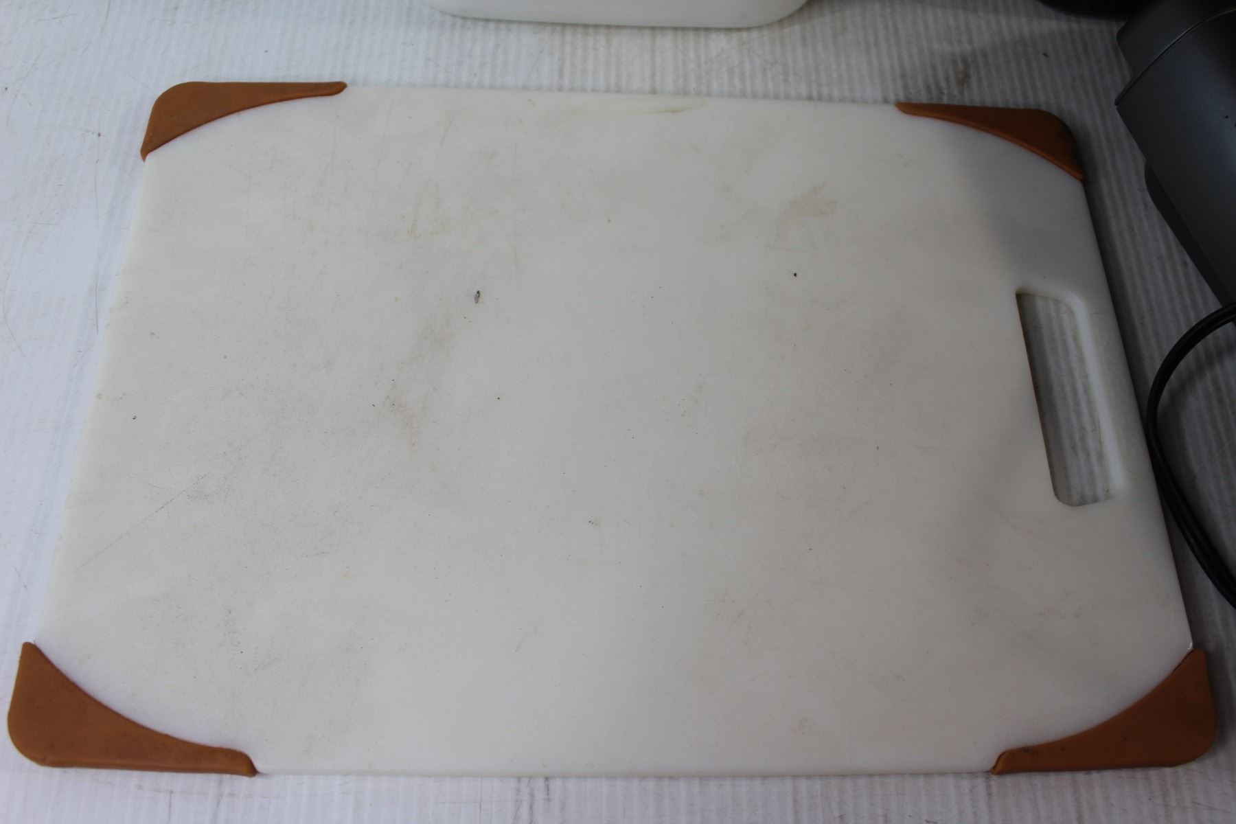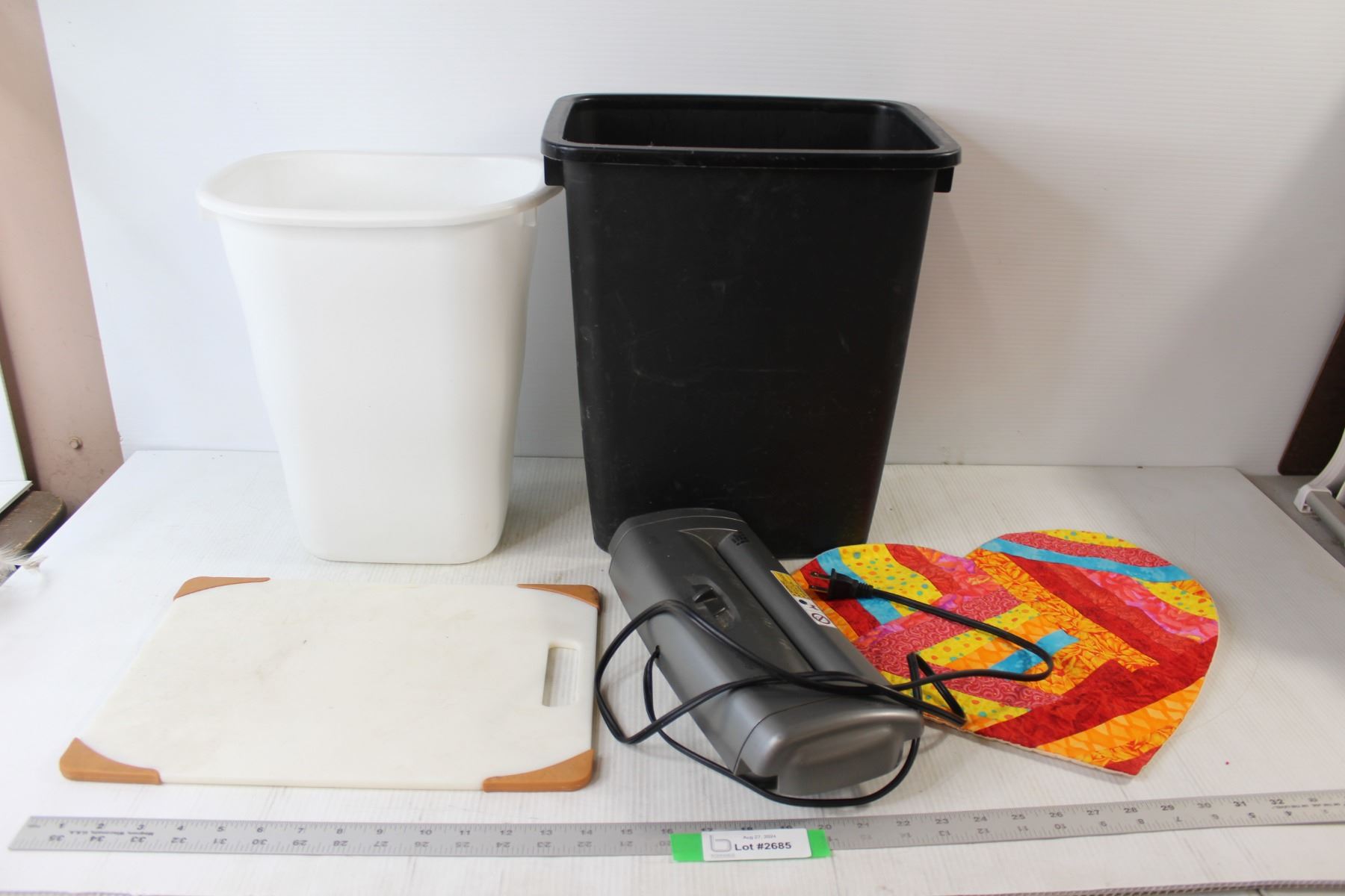 (2) Small Garbage Bins, Farberware Cutting Board, Shredmaster Paper Shredder - Tested Works, Heart Shaped Cloth