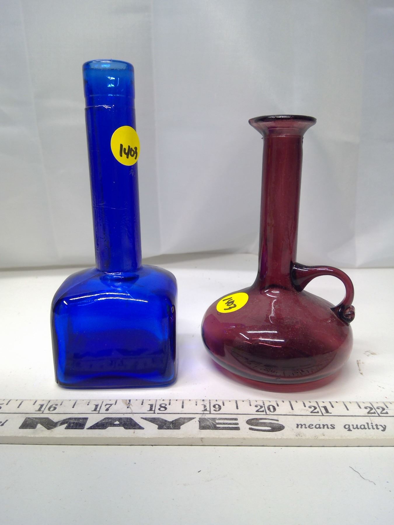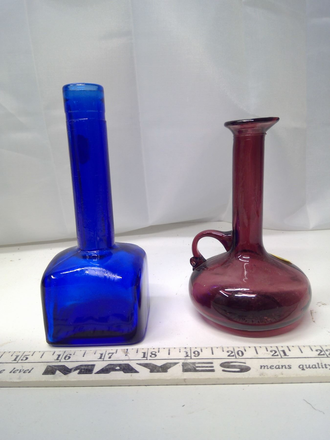 2 Small Glass Vases - Blue and Purple