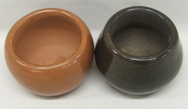 2 Small Santa Clara Pots By Reycita. Largest measures approx. 1 2/3''H x 2 1/2''W. SHI $25.