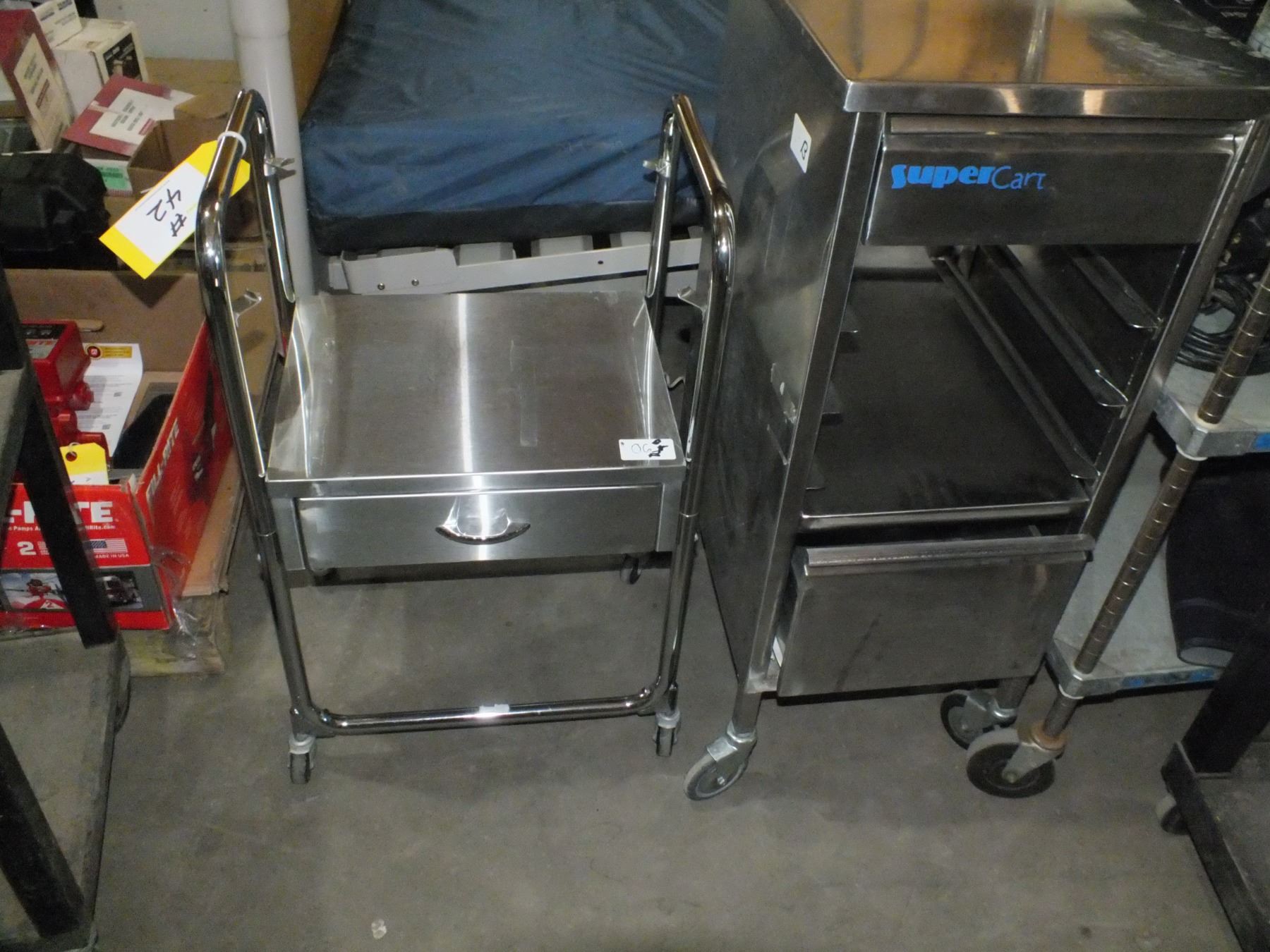 2 Small Stainless Steel Carts On Wheels, you get them both for one money...used