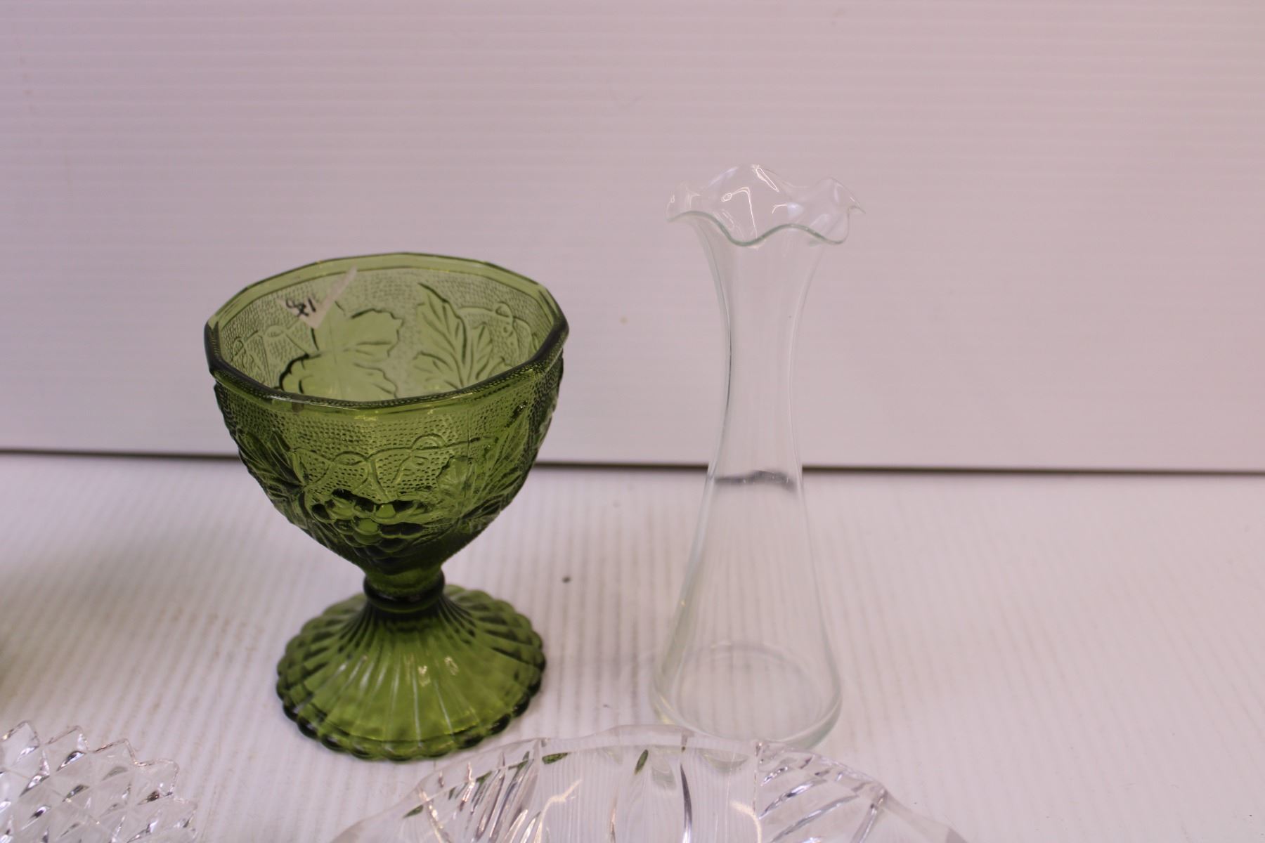 (2) Small Vases, (2) Ceramic Serving Dishes, (4) Pieces of Glassware