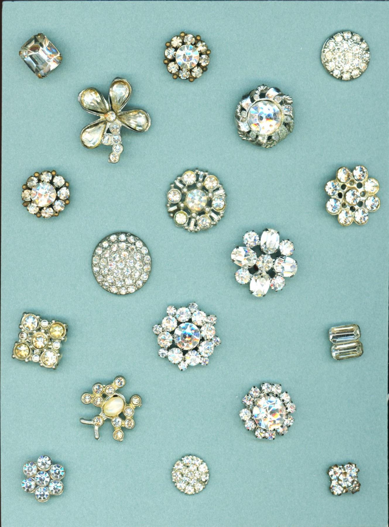 27 Medium/Large early and mod 20th century examples. From the collection of Connie Robinson of Florida and New York comes these two small cards of brilliant paste jewels in metal. Nice selection.