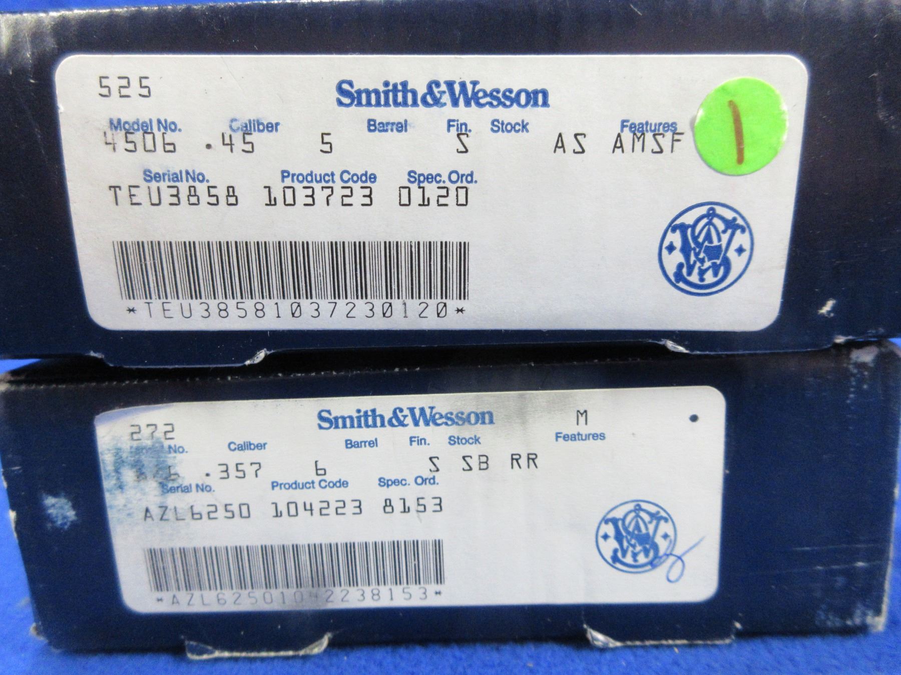 2 Smith & Wesson Empty Revolver Boxes - .357 and .45 Cal.