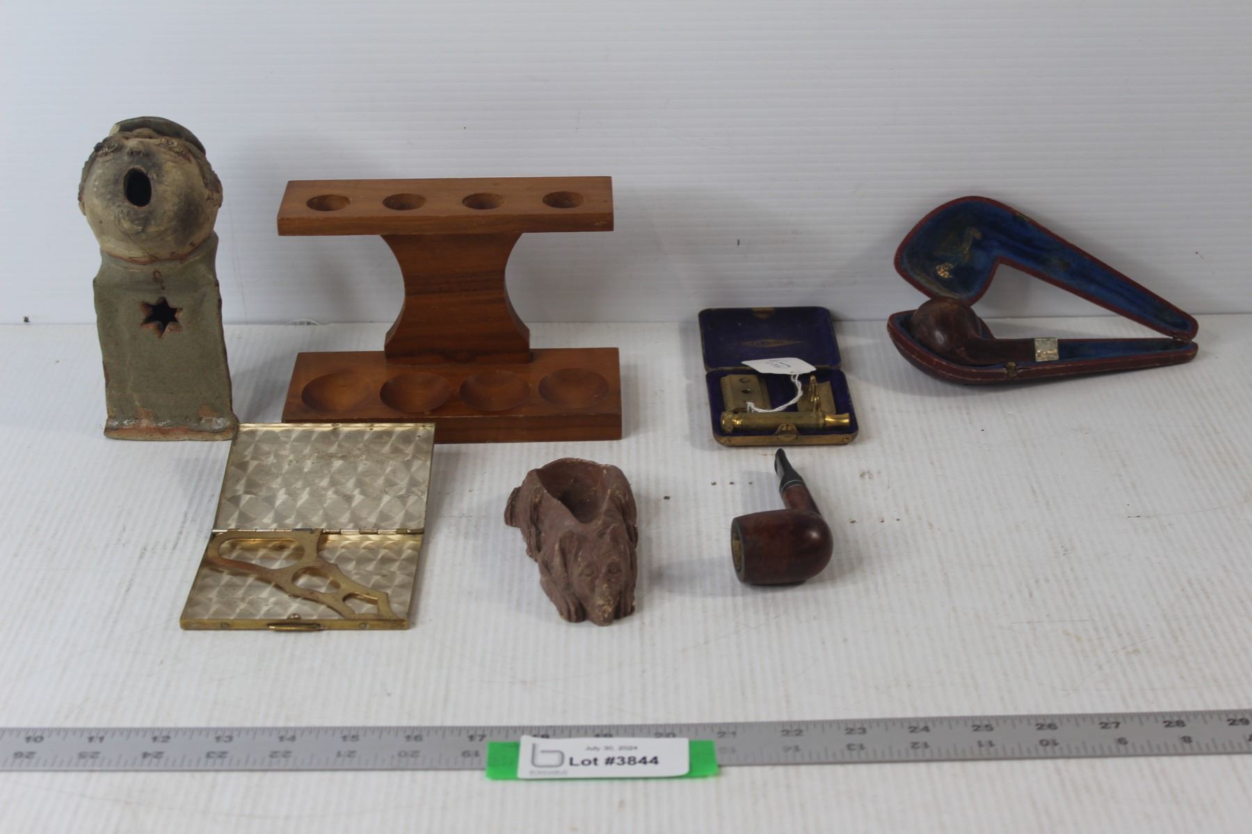 (2) Smoking Pipes, Gillete Razer Kit, Cigarette Garbage Statue, Misc