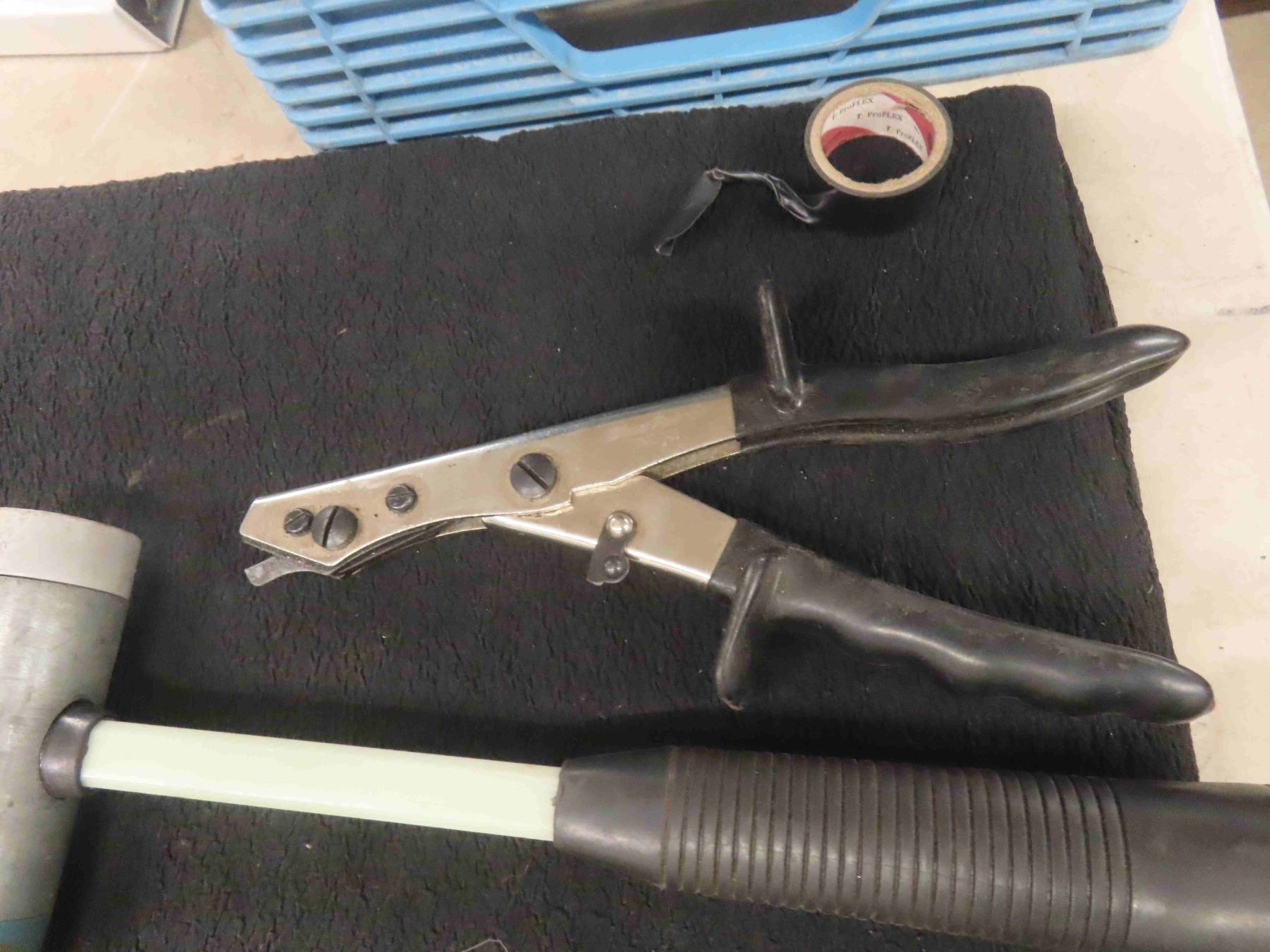 2 Snap On Mallets, Brute Industrial Riveter, Blue Point Tool ? - unknown use/name ( metal nibbler??)