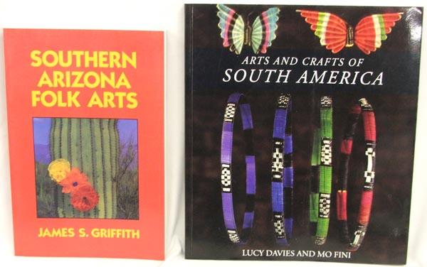 Two Reference Books, Southern Arizona Folk Arts by James S. Griffith, Arts and Crafts of South America by Lucy Davies and Mo Fini, largest measures 10'' x 8.75''. SHI $15.