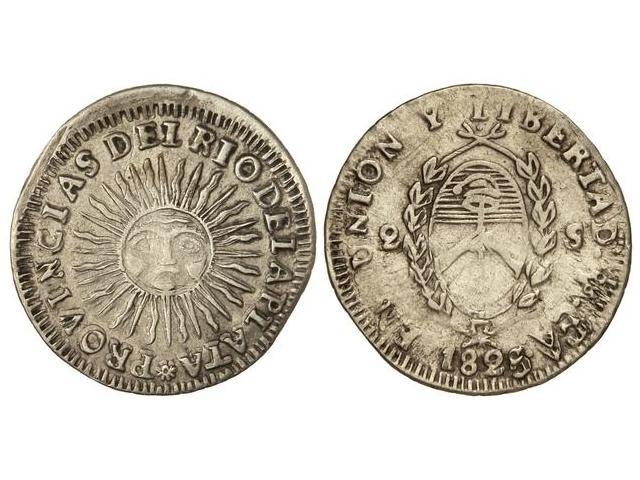 2 Soles. - 1825 (RA) CA. - PROVINCIAS DEL RÍO DE LA PLATA. - AR. Repintada. KM-18. MBC. - -