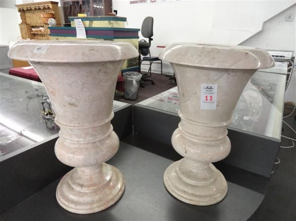 2 Solid Marble Urns Note some edge chips - 2 Times the Money