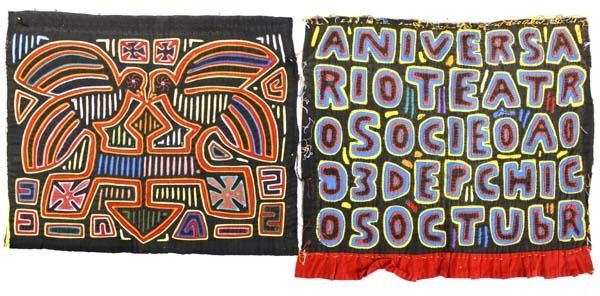 2 South American Kuna Indian Molas, measure 12'' x 15'', FYI: ''The Mola, or Molas, is a hand-made textile that forms part of the traditional women's clothing of the Kuna people from Panama.''