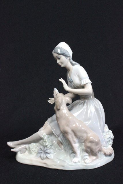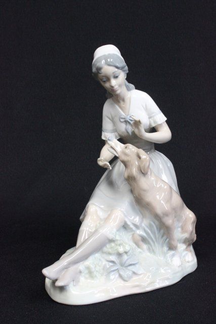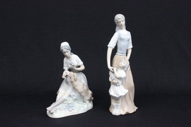 "Mother with Child" Approx. 12.5" H. "Seated Girl with Dog." Approx. 9" H.