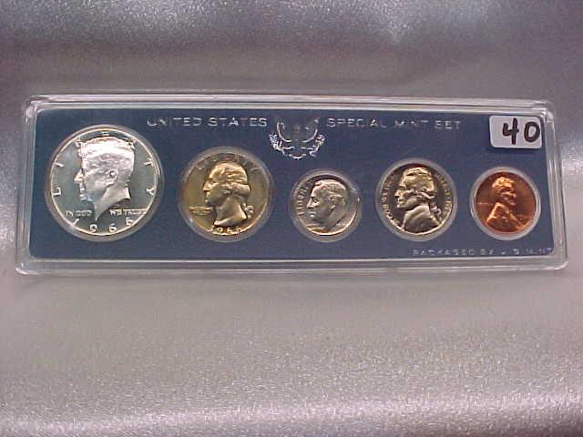 2 US Mint Sets in plastic holders: 1965 SMS, 1966 SMS (beautiful coins)