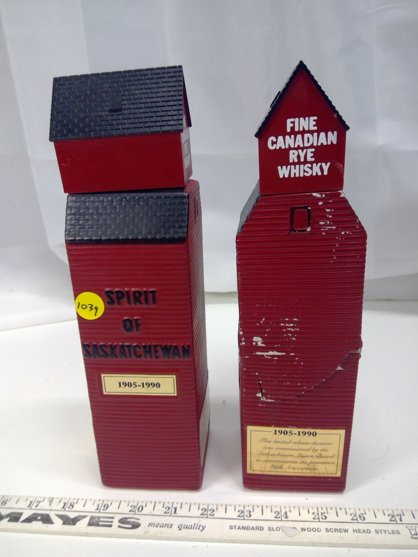 2 Spirit of Saskatchewan 1905-1990 Fine Rye Whiskey Ceramic Bottles *ONE IN PIECES*