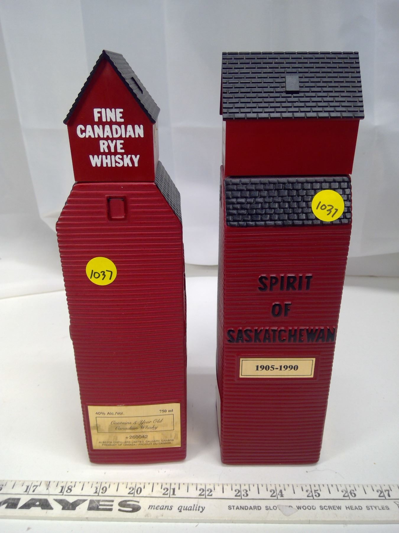 2 Spirit of Saskatchewan 1905-1990 Fine Rye Whiskey Ceramic Bottles