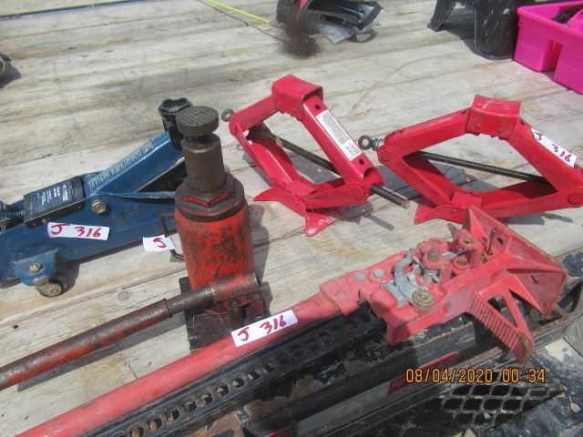 2 Stabilizing Jacks, Floor Jack, Hyd Jack, Jack All - (Missing Pin) 3 Screw Jacks