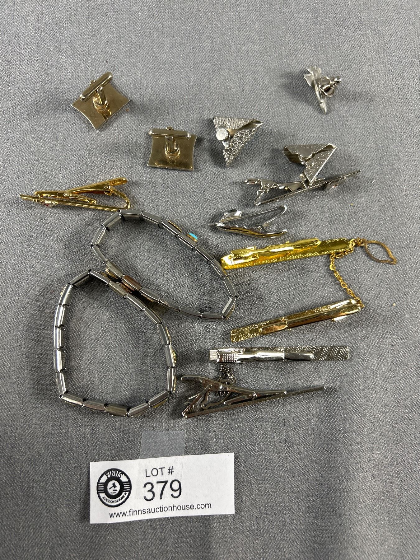 2 Stainless Steel Link Bracelets Some Marked Zoppini, Nomination, Porodiutti, Italia etc 7 Tie Bars + Pair of Cufflinks and Collar Clips