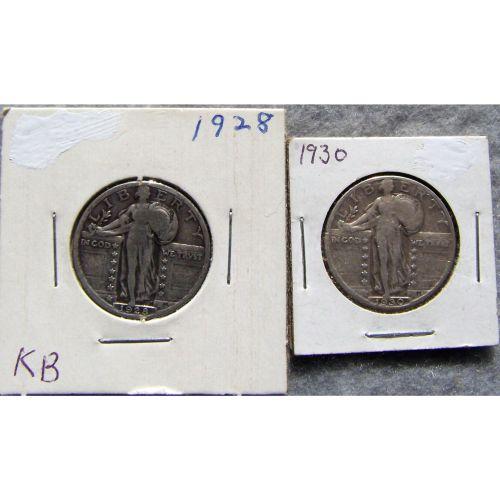 2 Standing Liberty Silver Quarters 1930 & 1925