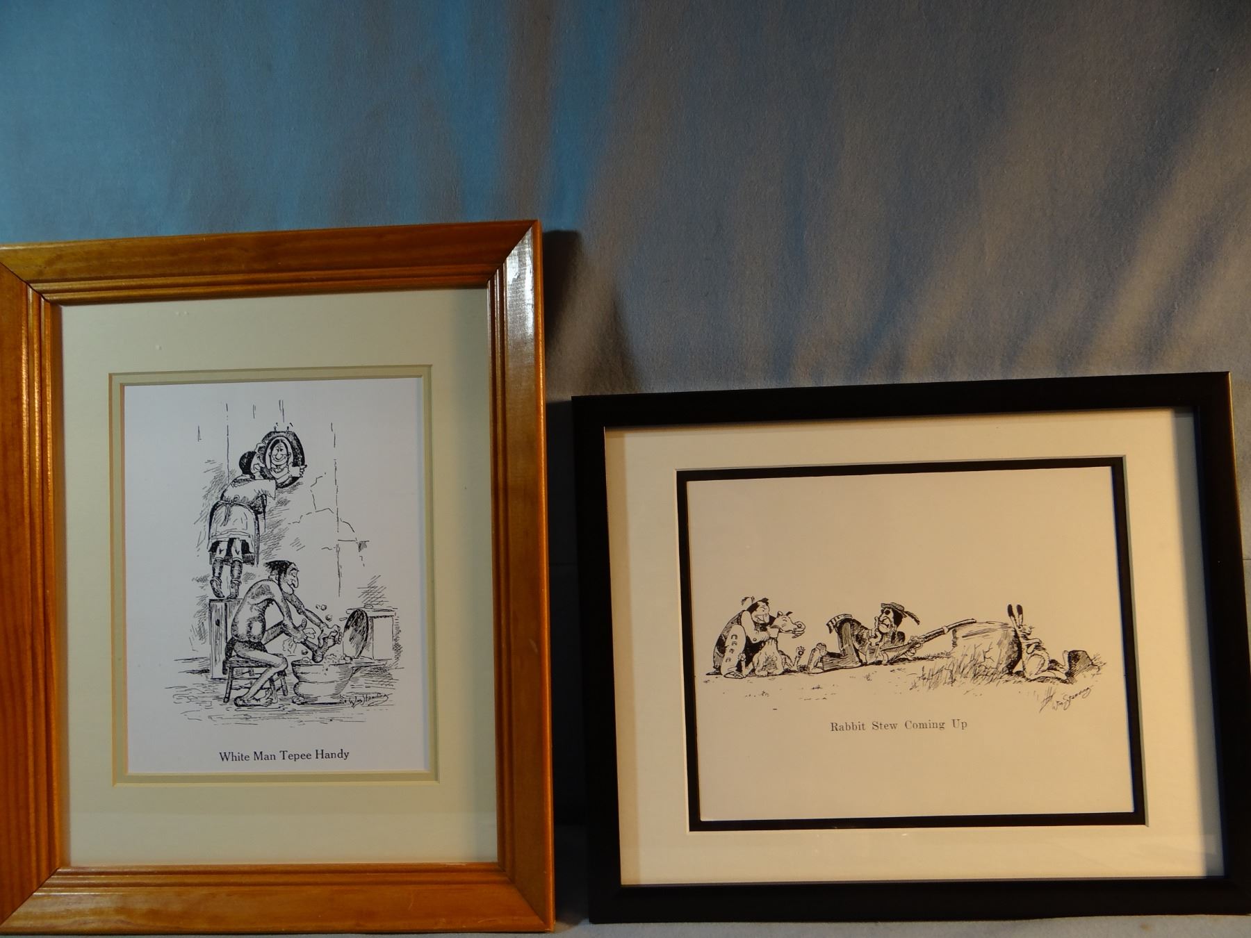 2 Standing, William cartoons, 7" x 9" and 8" x 10", framed