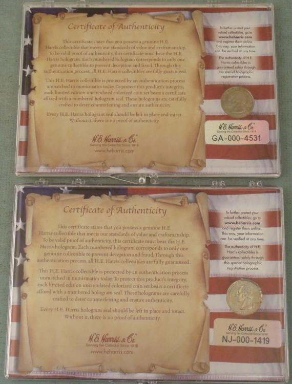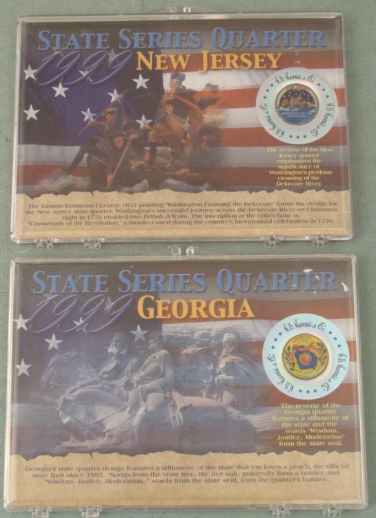 2 State Series Colorized Quarters from 1999 * States: New Jersey and Georgia Presentation: In plastic cases with history, COA, and numbered hologram
