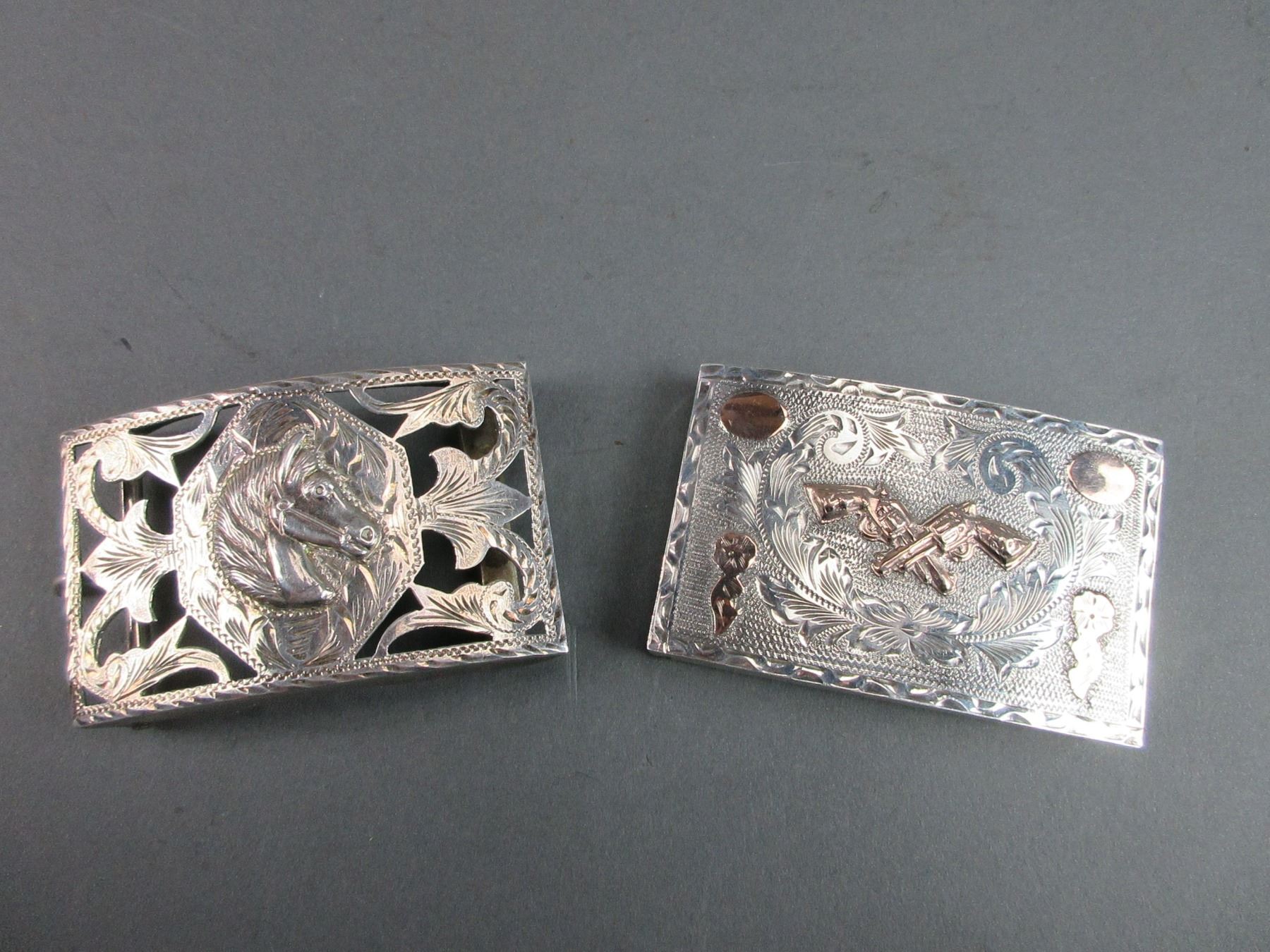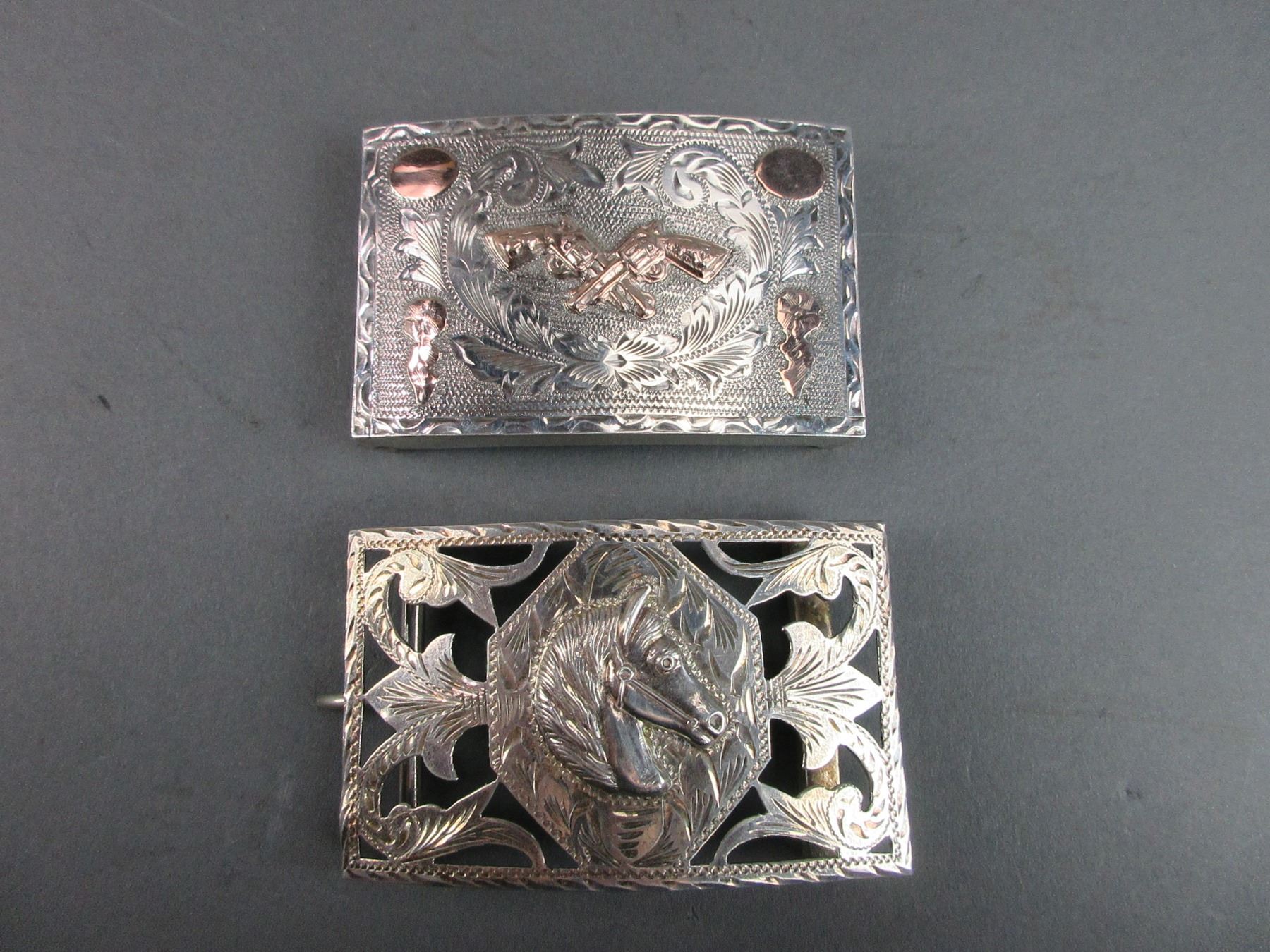 2 Sterling Marked Mexican Belt Buckles- Both Are Marked .925- 3.25" X 2"