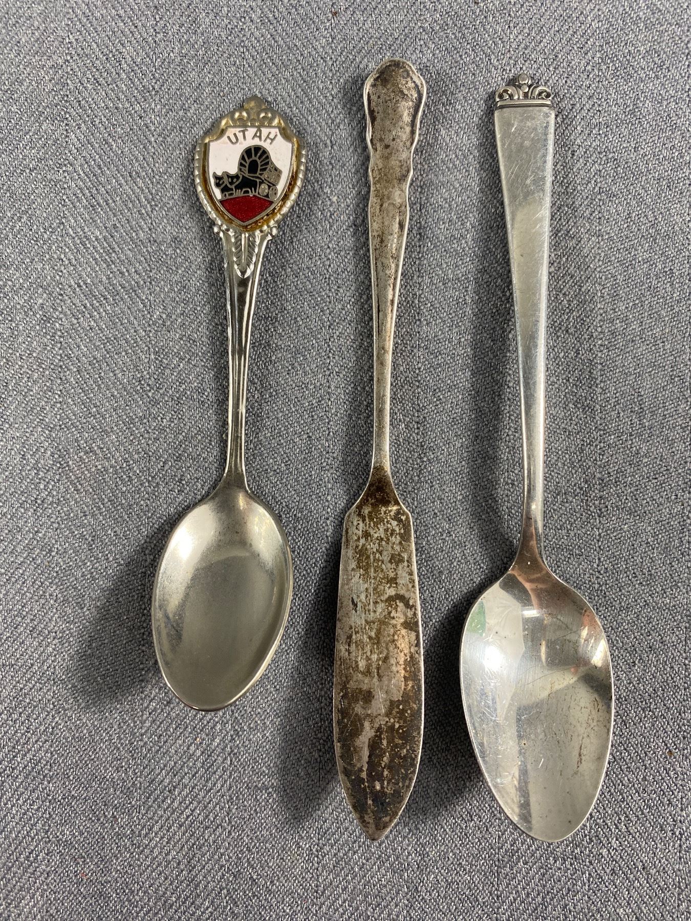 2 Sterling Silver Miniature Spoons & Miniature Butter Knife