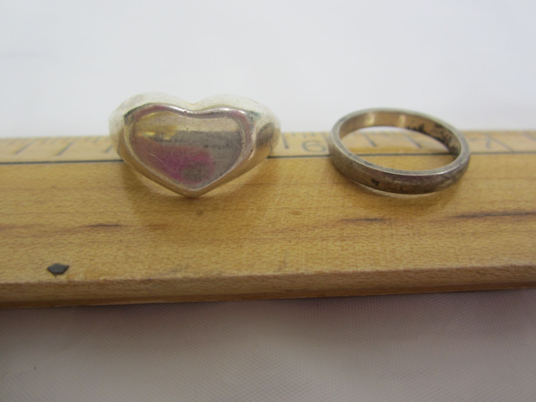 2 Sterling Silver Rings 1 Heart and 1 Band