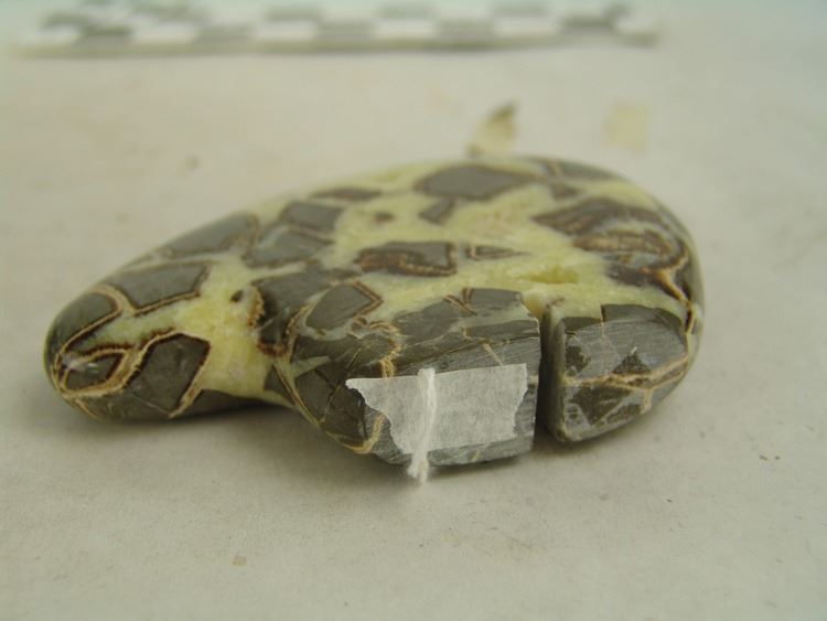 Pair of beautifully polished hand carved stone bear fetishes made from septarian stone (fossilized mud balls). Very good condition, unsigned.,Late 1900s,Largest 4-1/2"