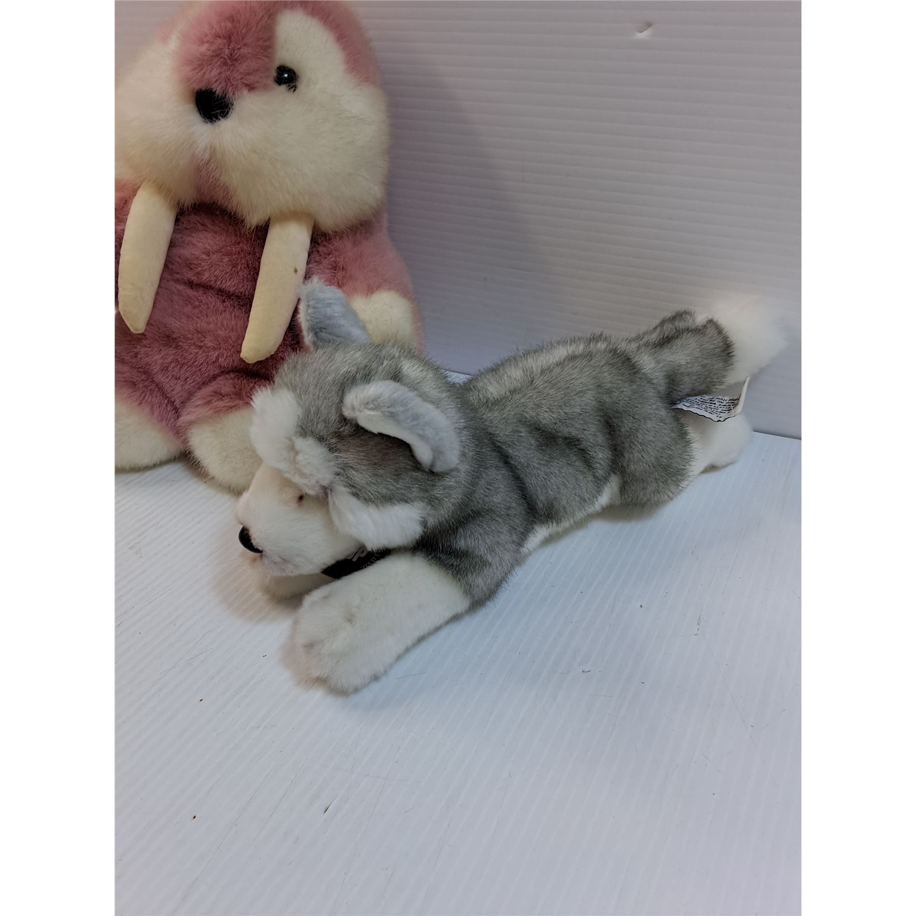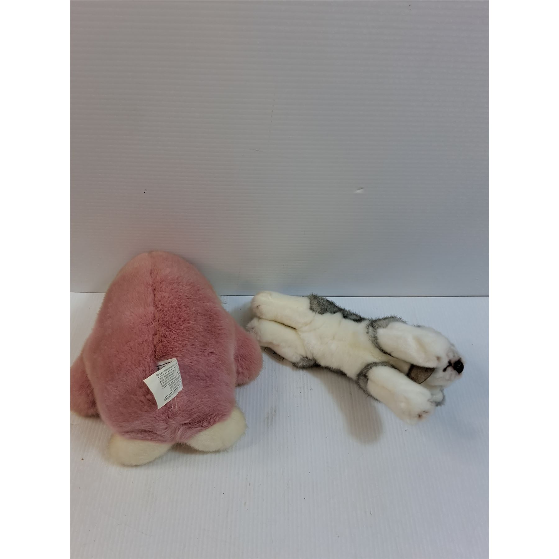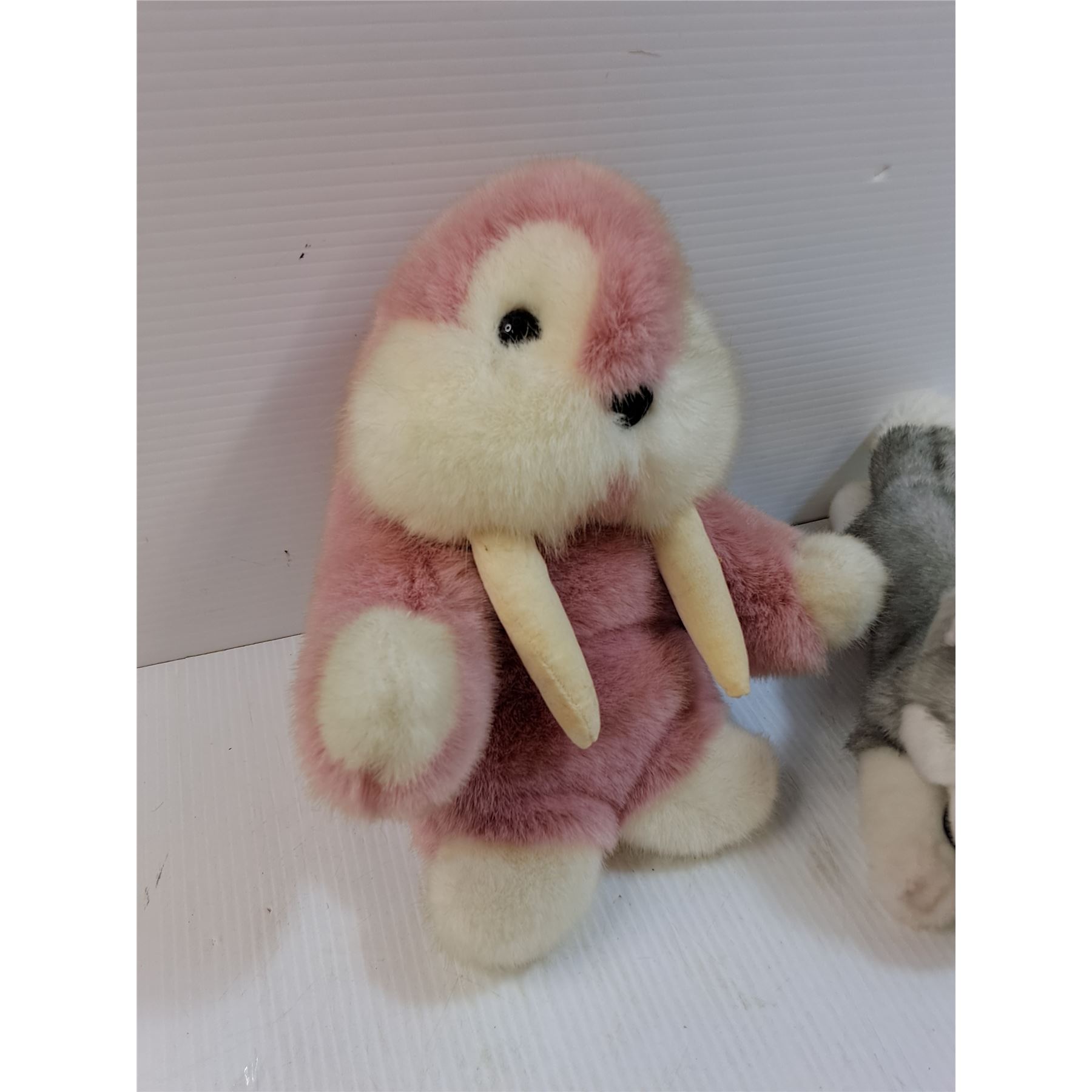 (2) Stuffies: Pink Walrus, Grey Wolf