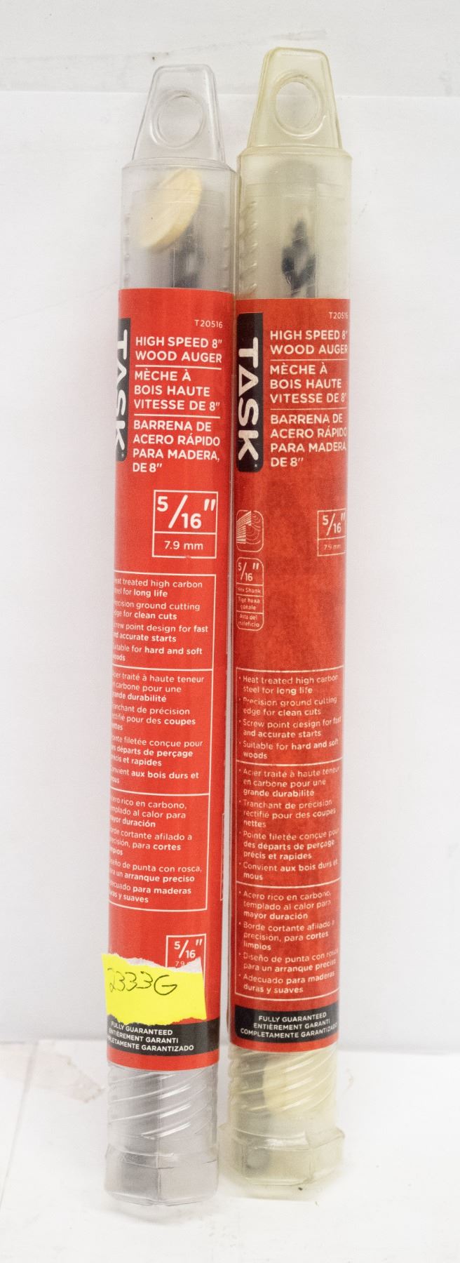 2 TASK HIGH SPEED 8" WOOD AUGER BITS 5/16"