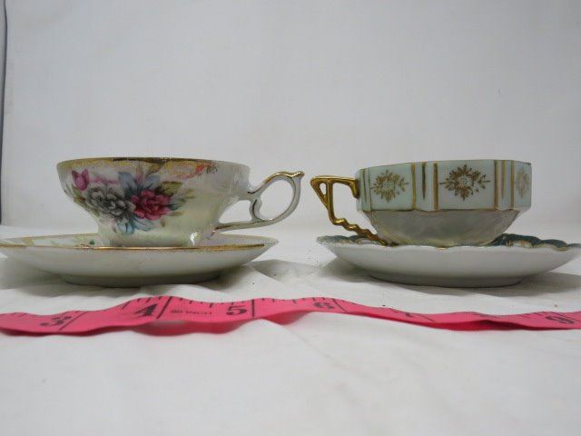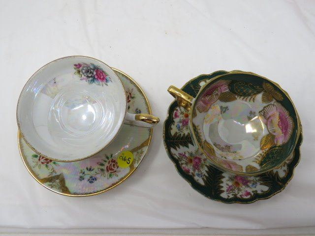 2 TEA CUPS & SAUCERS (NO CRACKS/ CHIPS) *1 HAND PAINTED* (MADE IN JAPAN)