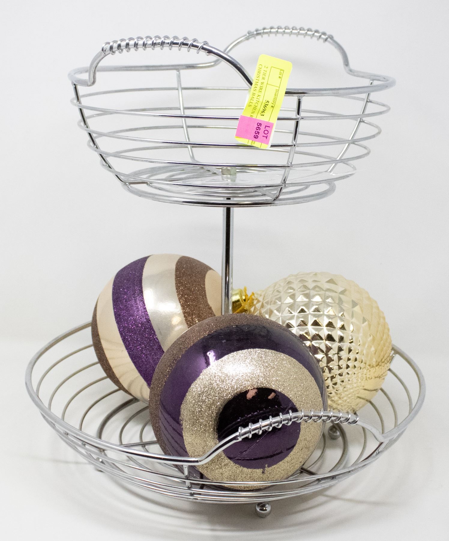 2 TIER WIRE KITCHEN RACK W CHRISTMAS BALLS