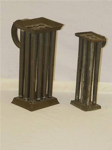 (2) TIN CANDLE MOLDS: (1) 6 HOLE & (1) 12 HOLE - DENTS, WEAR