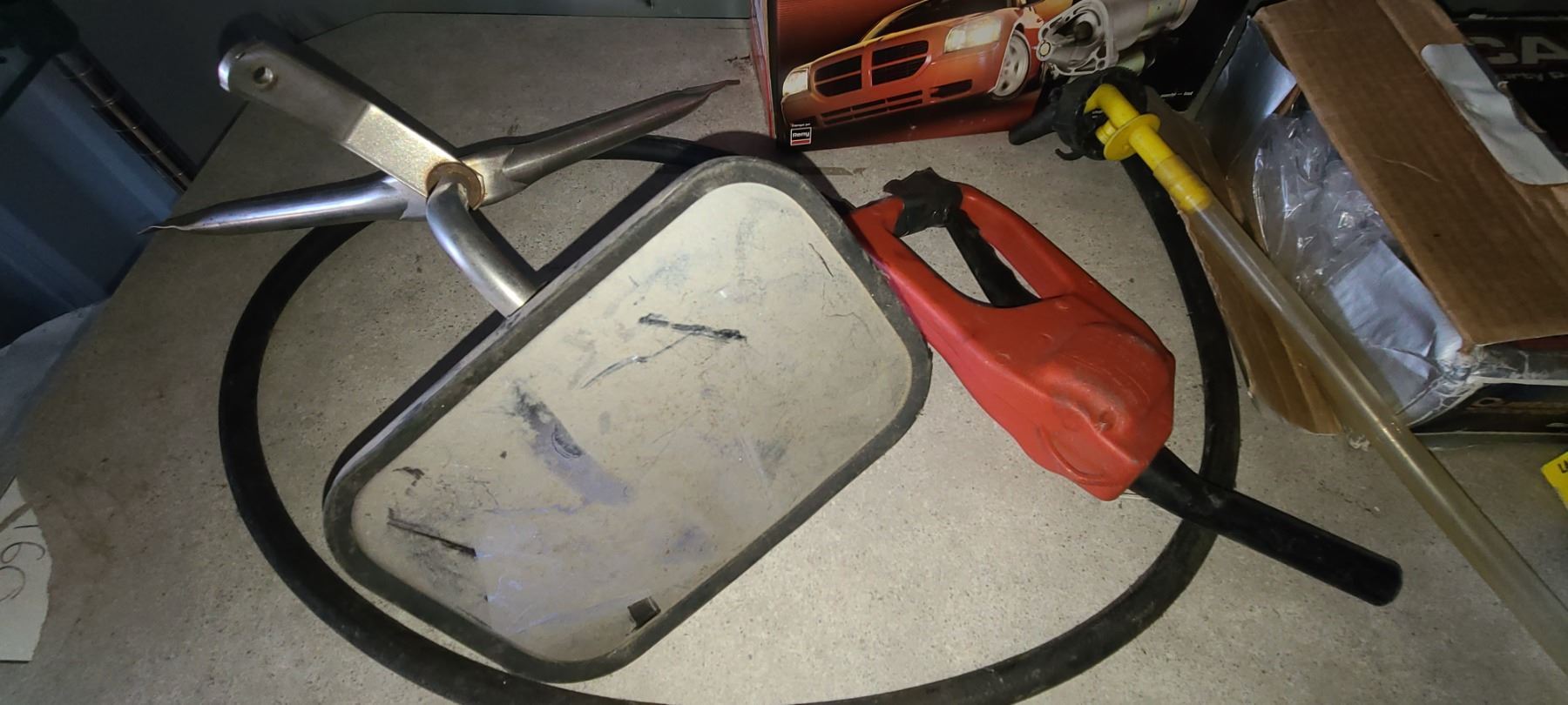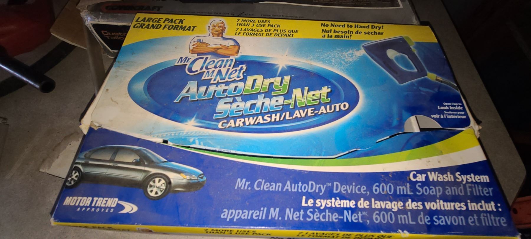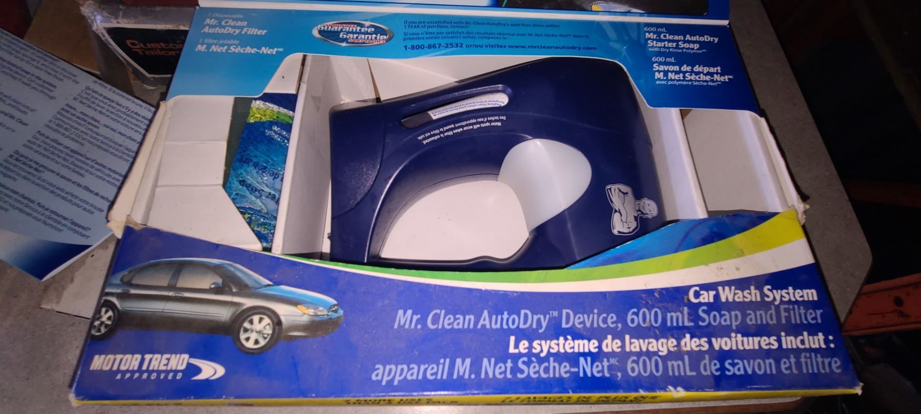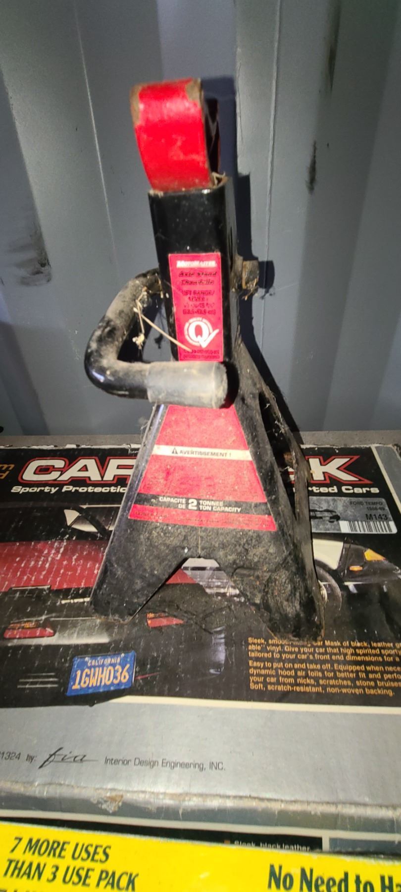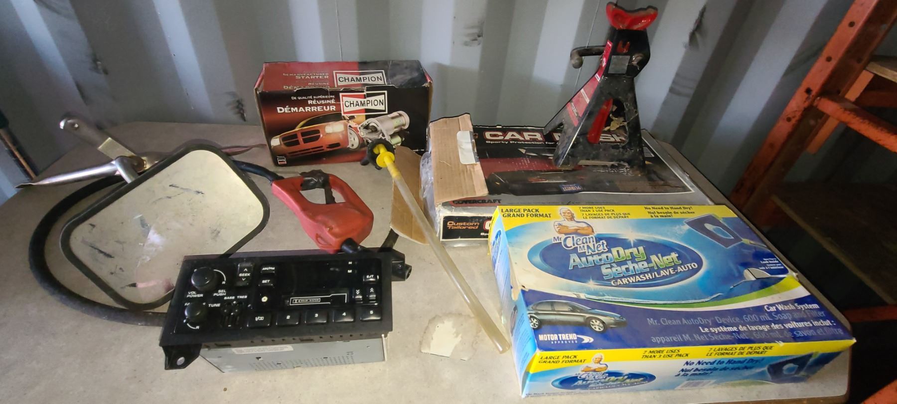 2-TONNE JACKSTAND, CAR MIRROR, RADIO AND PUMP; 'MR. CLEAN' WASHER HEAD.
