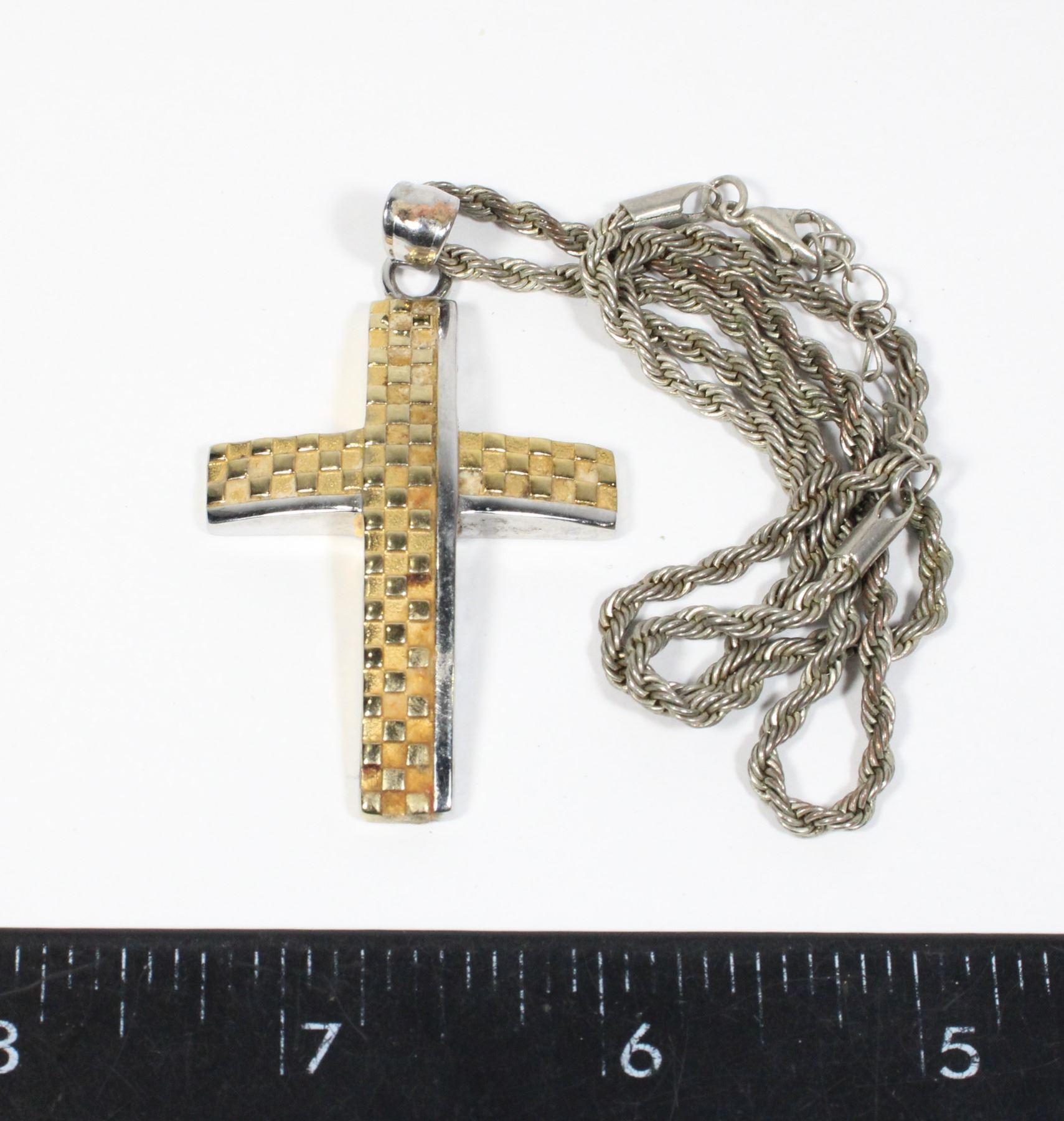 2 TONE STAINLESS STEEL CROSS PENDANT AND CHAIN