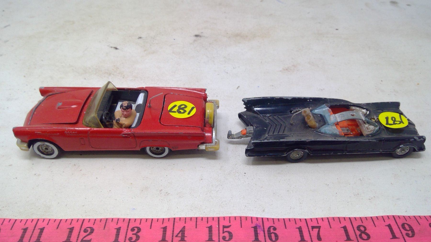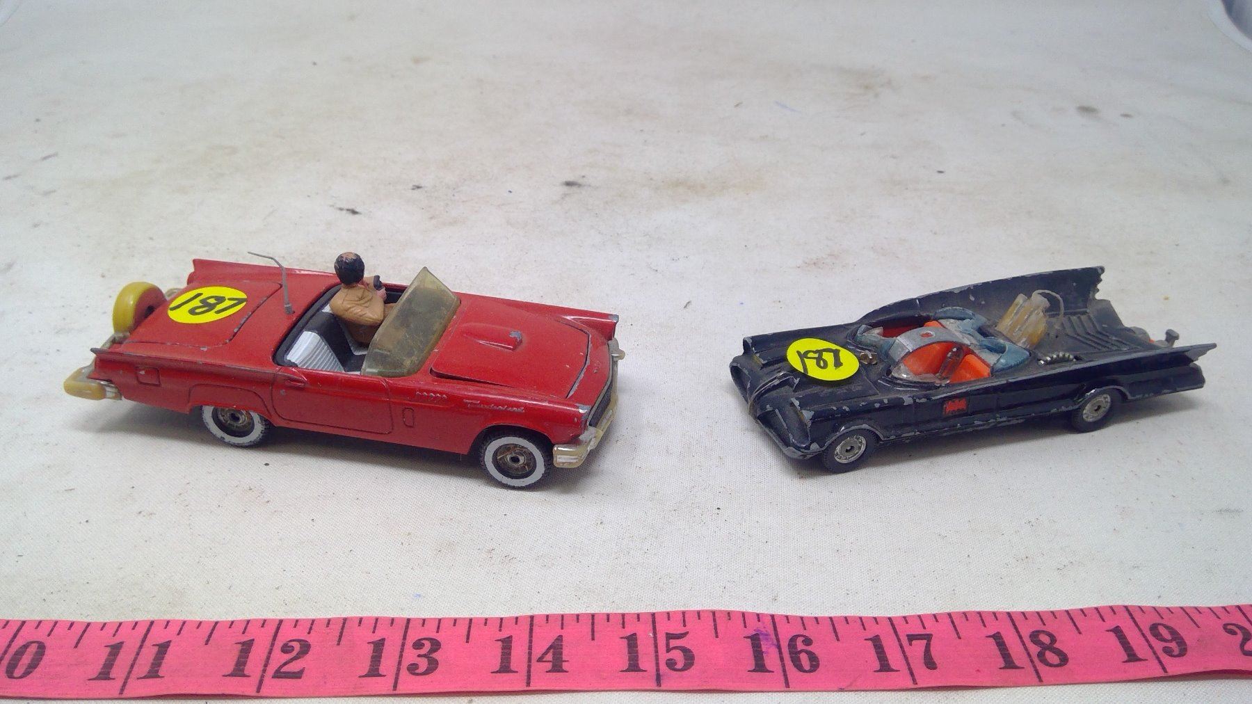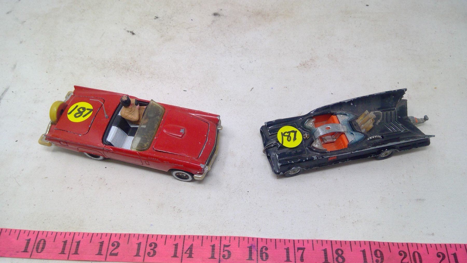 2 TOY CARS-CORGI-BATMAN AND RED CONVERTIBLE