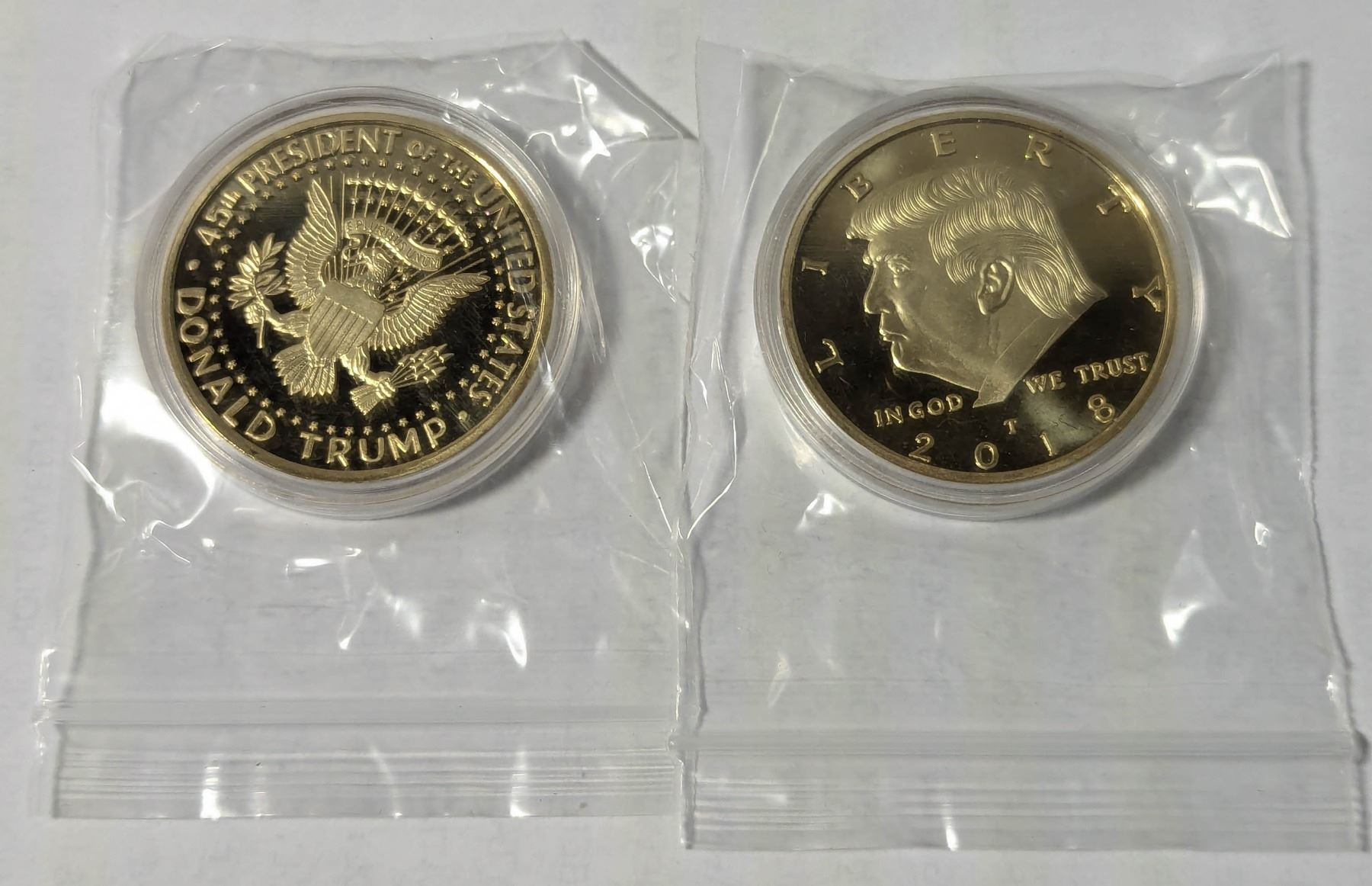 2 TRUMP PRESIDENTIAL COINS IN CASES TOGETHER