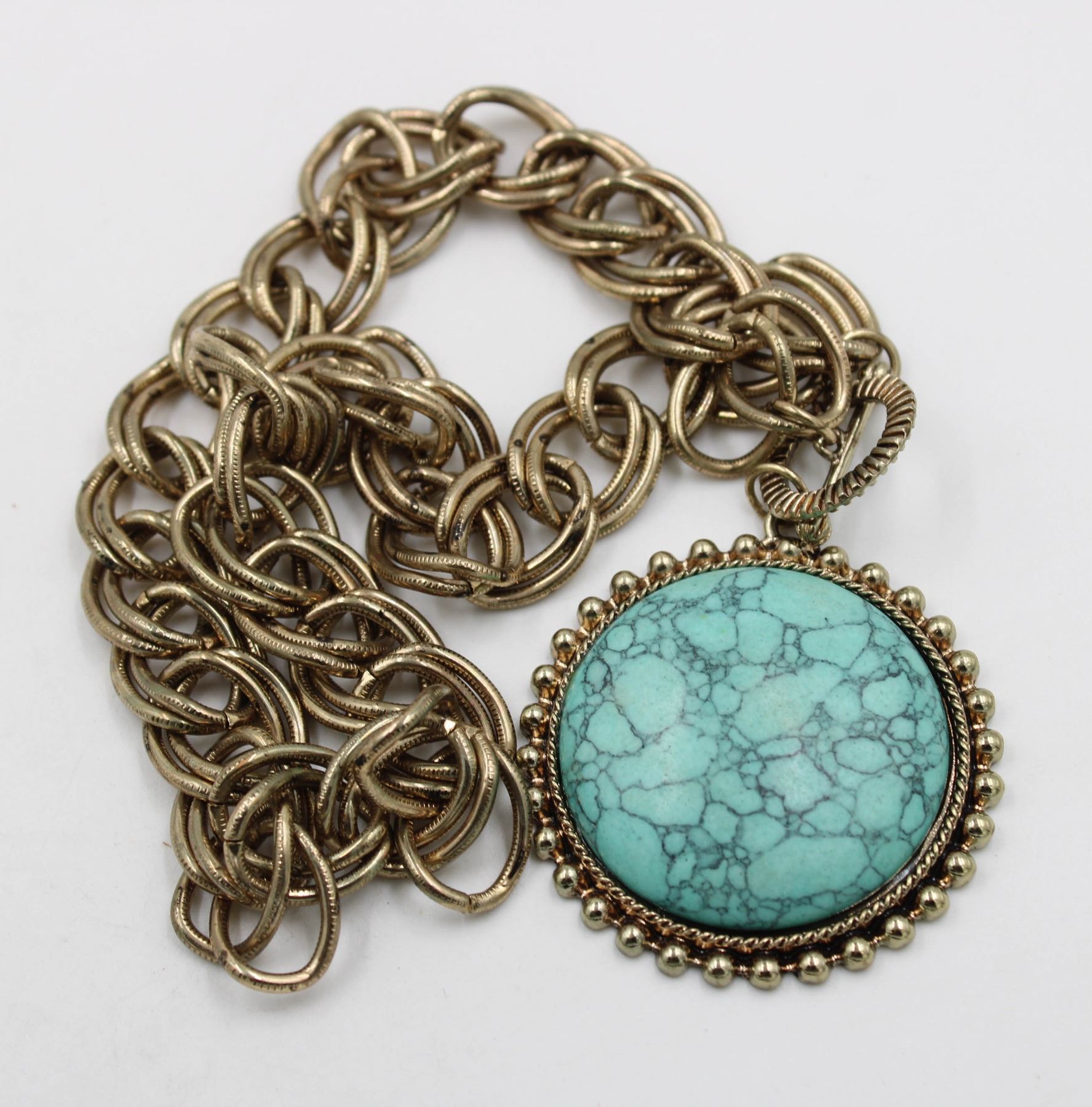 2" TURQUOIS PENDANT ON THICK CHAIN