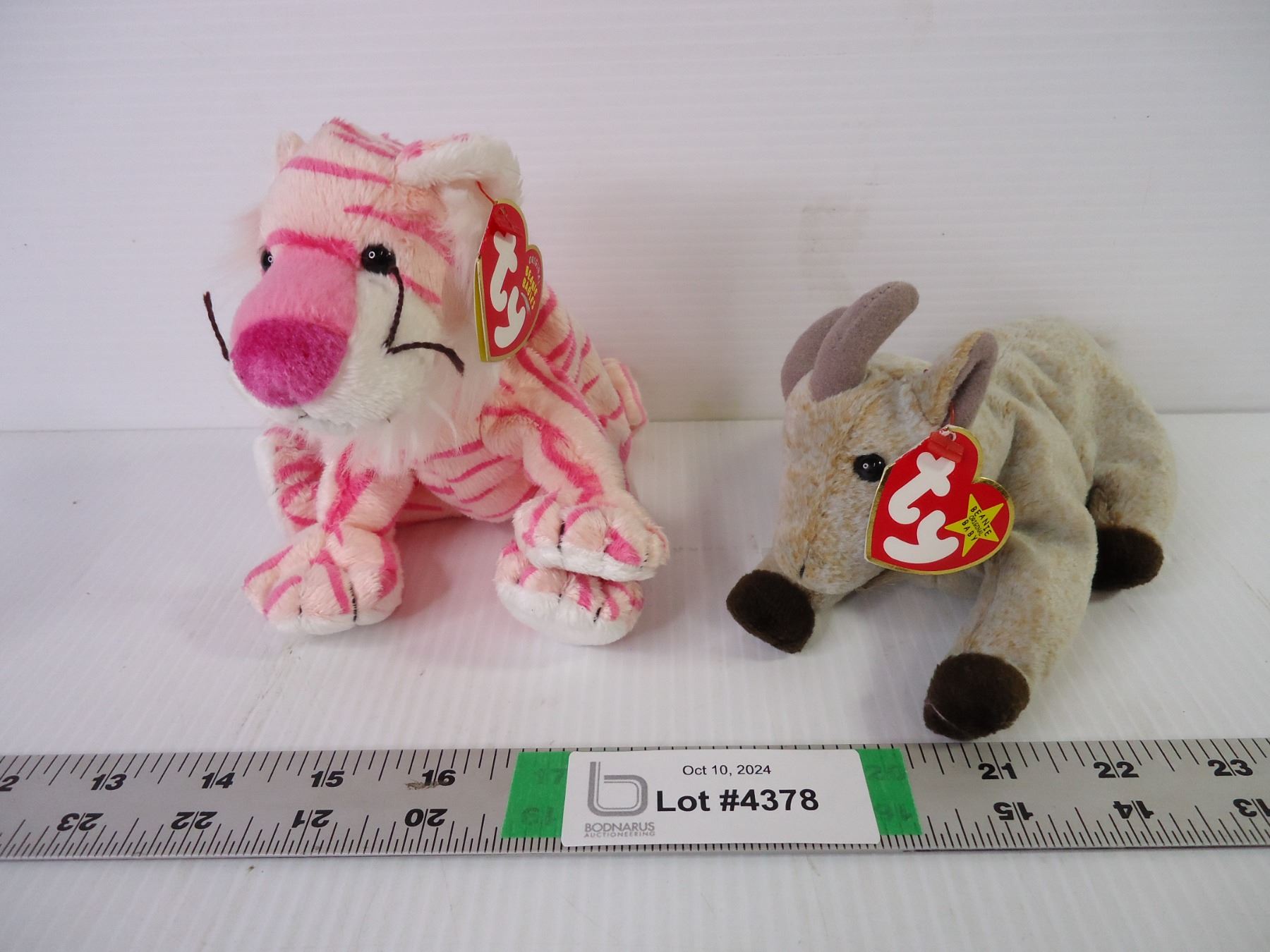 (2) TY Beanie Babies-Mystique the Pink Tiger and Goatee the Goat